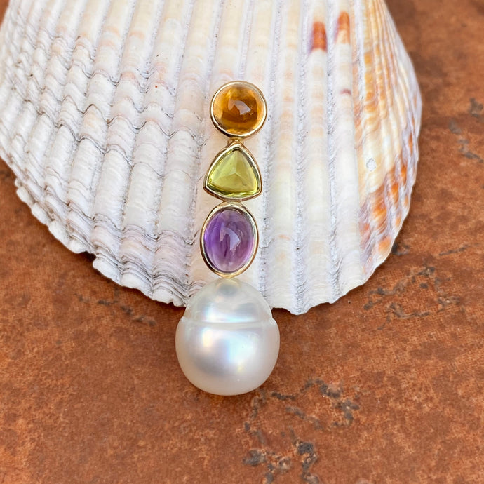 14KT Yellow Gold Peridot, Amethyst, Citrine + Paspaley South Sea Pearl Pendant Slide