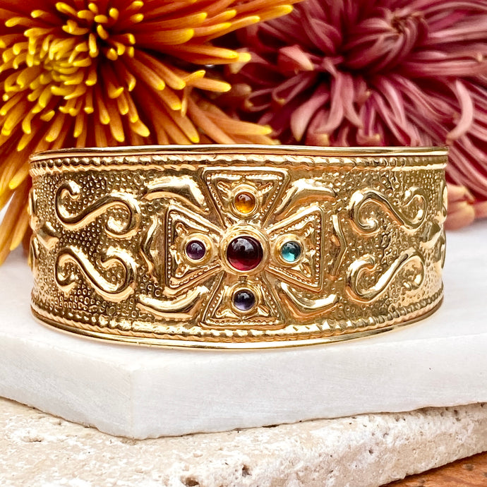 14KT Yellow Gold Gemstones Etruscan Cross Pendant Charm
