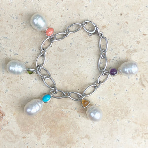 14KT White Gold Gemstones + Genuine Paspaley South Sea Pearls Bracelet