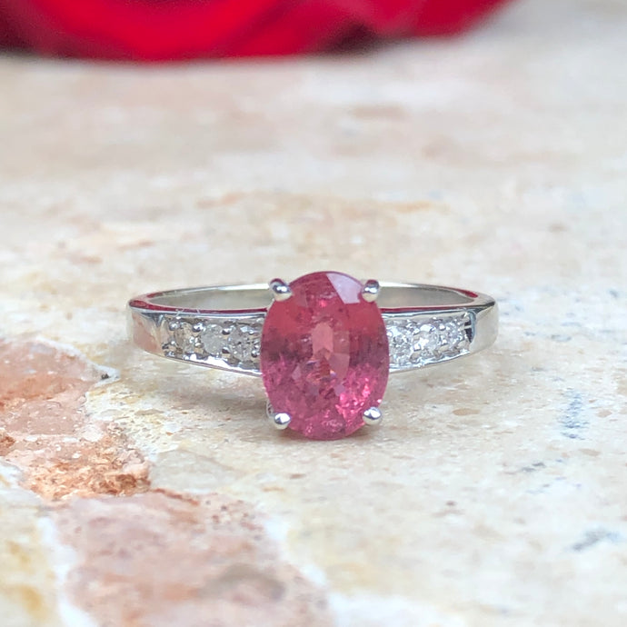 Estate 14KT White Gold Oval Pink Tourmaline + Pave Diamond Ring Size 7