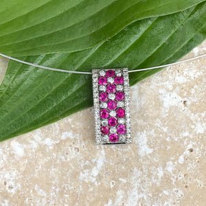 Estate 14KT White Gold Ruby + Diamond Rectangle Pendant Slide