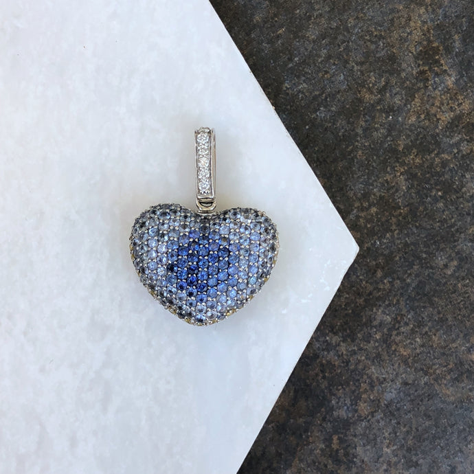 14KT White Gold Pave Diamond + Blue Sapphire Heart Pendant