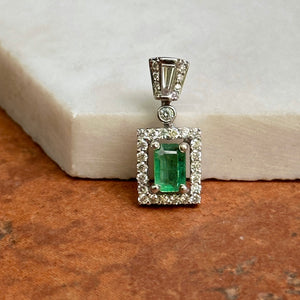 Estate 14KT Yellow Gold Emerald-Cut Faceted Emerald + 6 Round Diamond Ring