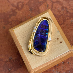 Estate 14KT Yellow Gold Elongated Emerald-Cut Aquamarine + Diamond Ring