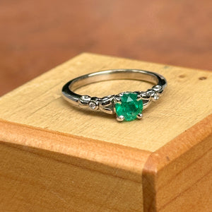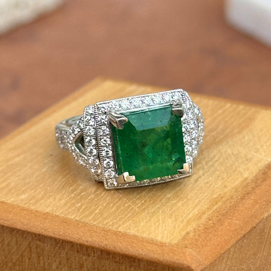 Estate 14KT White Gold Genuine Oval Emerald Bypass Ring