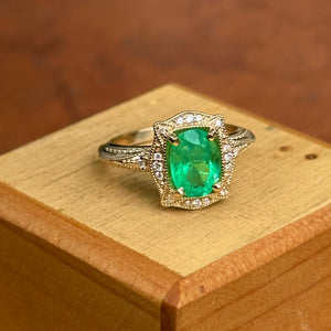 Estate 14KT Yellow Gold Oval Colombian Emerald + Diamond Ring