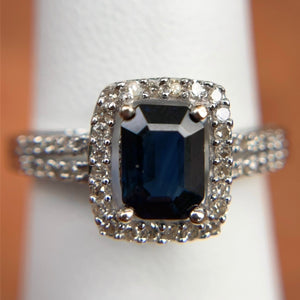 Estate 14KT Yellow Gold Elongated Emerald-Cut Aquamarine + Diamond Ring