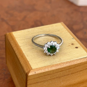 Estate 14KT Yellow Gold Oval Emerald + Diamond Halo Stud Earrings