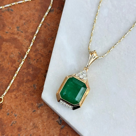 Estate 14KT Yellow Gold Oval Emerald + Diamond Pendant Charm Small