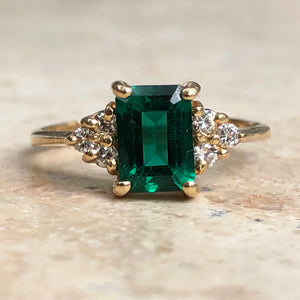 14KT Yellow Gold Lab Emerald-Cut Emerald + Diamond Ring
