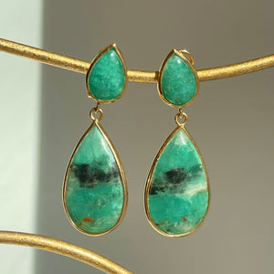 18KT Yellow Gold Cabochon Teardrop Bezel-Set Colombian Emerald Earrings