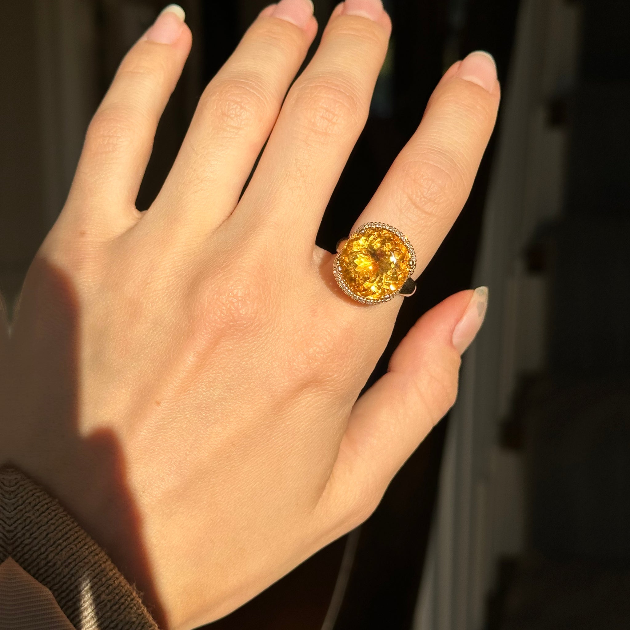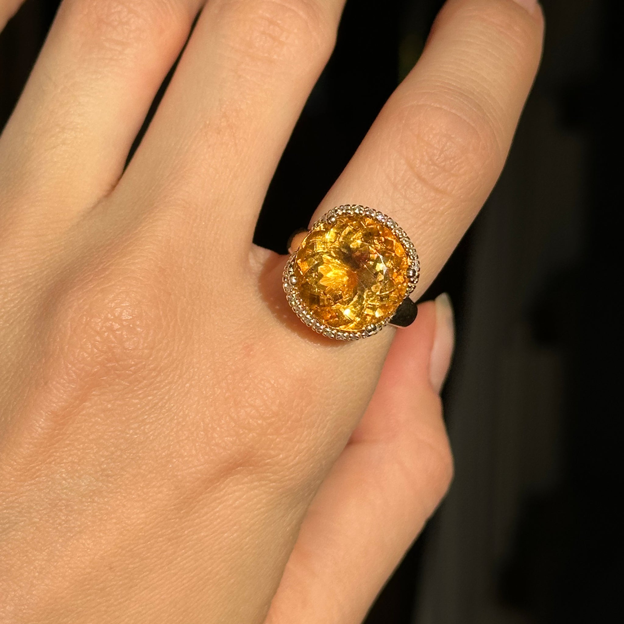 - Genuine, round-cut citrine, faceted measures: 14.70 mm