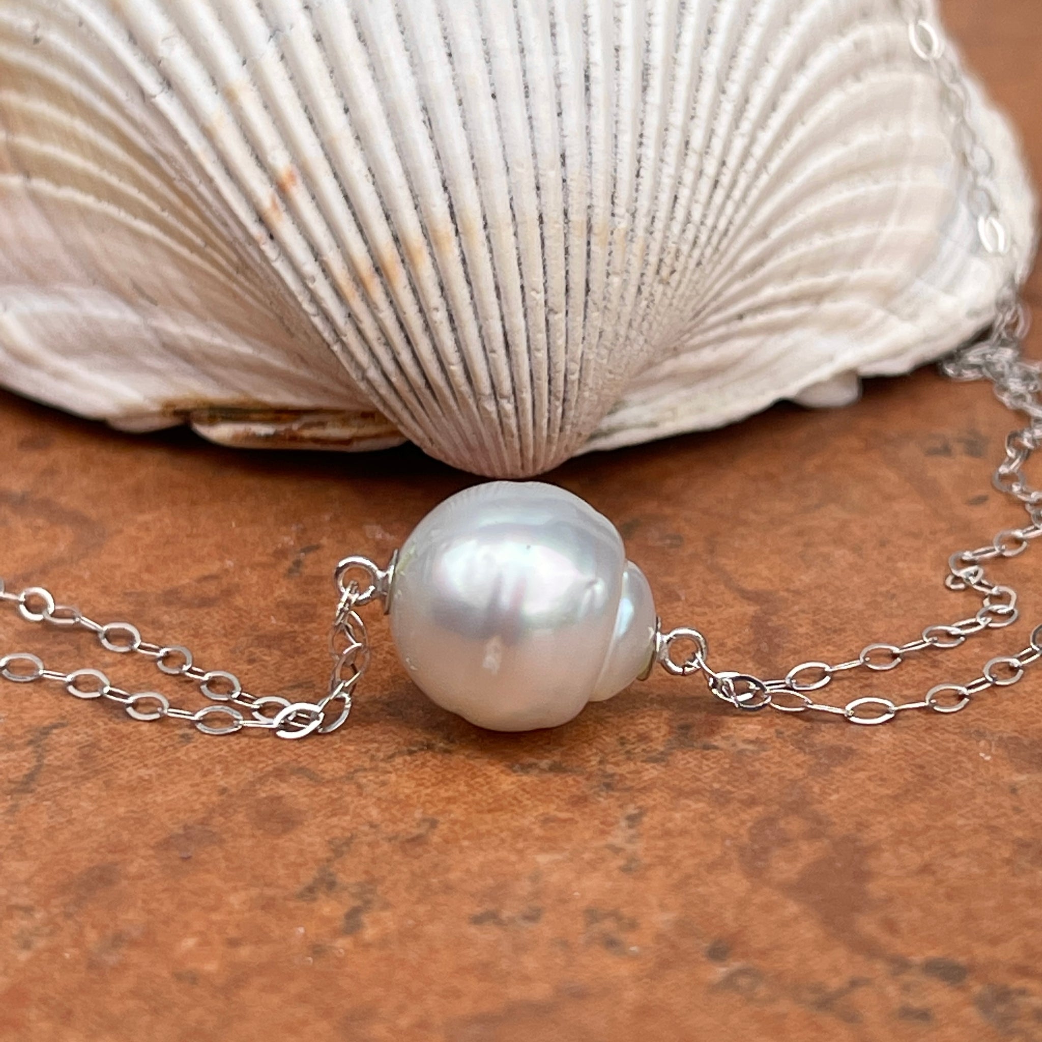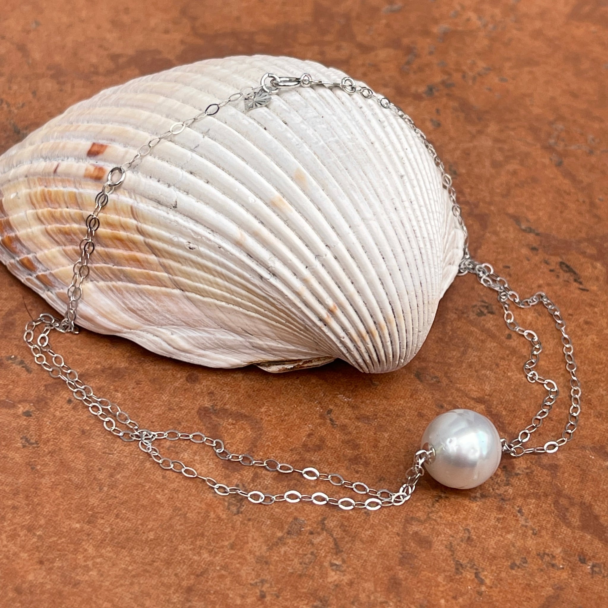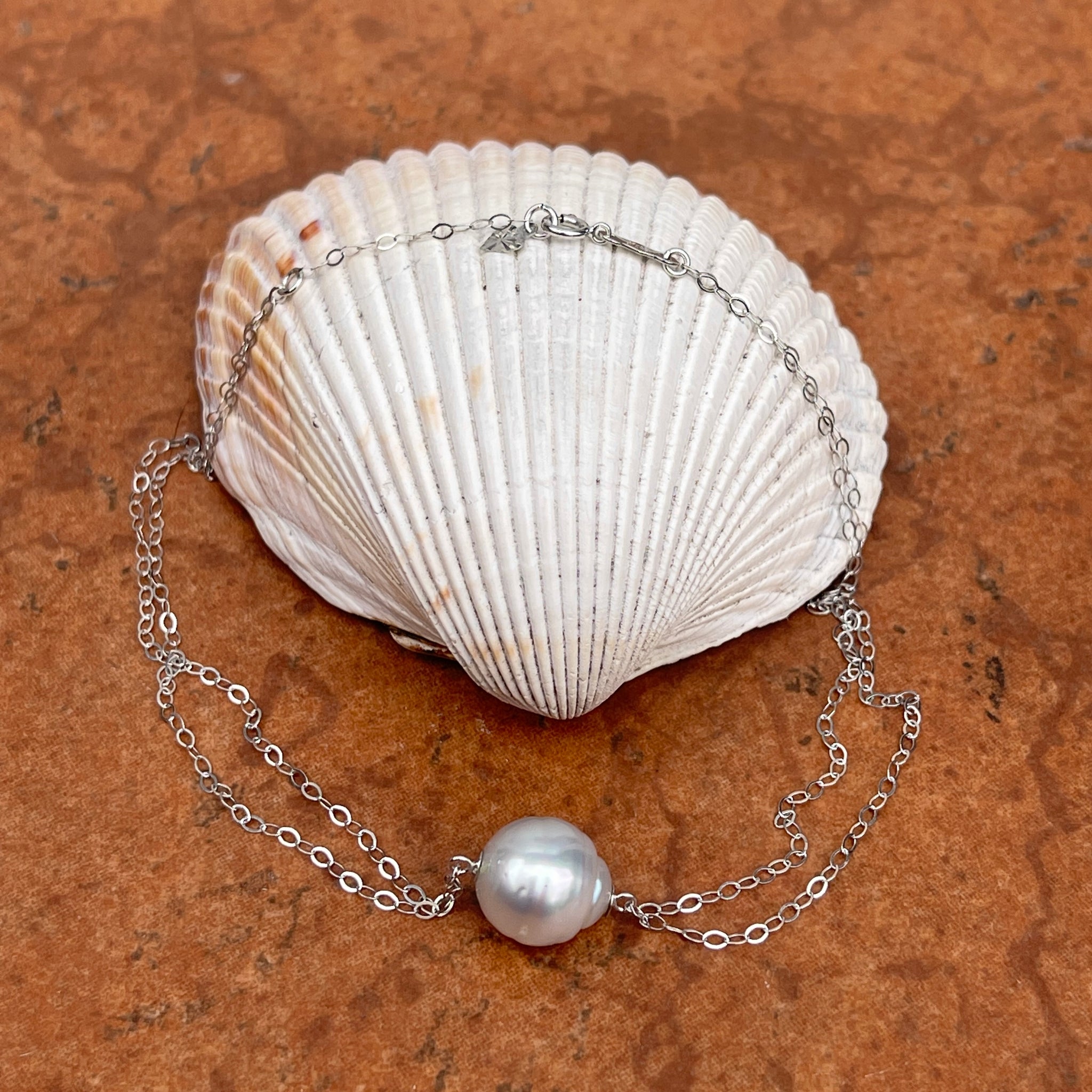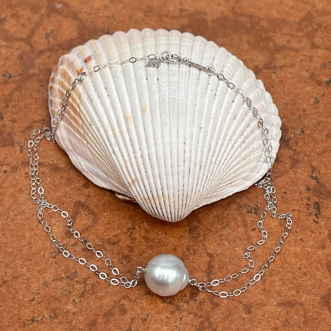 14KT white gold double, open chain link anklet with station, genuine, white, Paspaley south sea pearl. A fabulous way to jazz up your ankles!