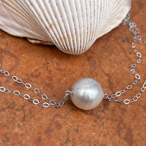 14KT White Gold Double Chain Station Paspaley South Sea Pearl Anklet