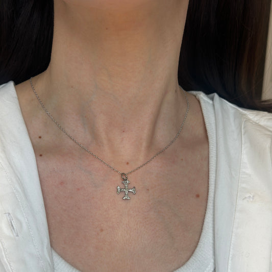 14KT White Gold Mini Blue Sapphire Cross Charm Pendant