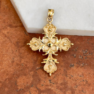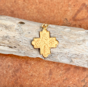 14KT Yellow Gold Matte Four Way Cross Medal Pendant 30mm