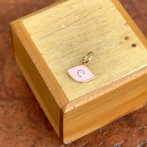 14KT Yellow Gold 4-Leaf Clover Light Pink Enamel Pendant Charm 7mm