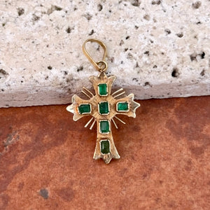 10KT Yellow Gold Emerald + Diamond Cross Pendant Chain Necklace 17"