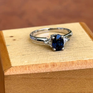 Estate 10KT White Gold Oval 1.25 CT Lab Ceylon Blue Sapphire + White Sapphire Ring
