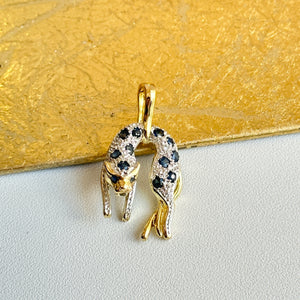 10KT White Gold Round Blue Sapphire and Diamond Panther Pendant Slide with Hidden Bail