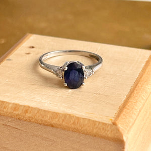 Estate Platinum Oval Blue Sapphire + Diamond Ring