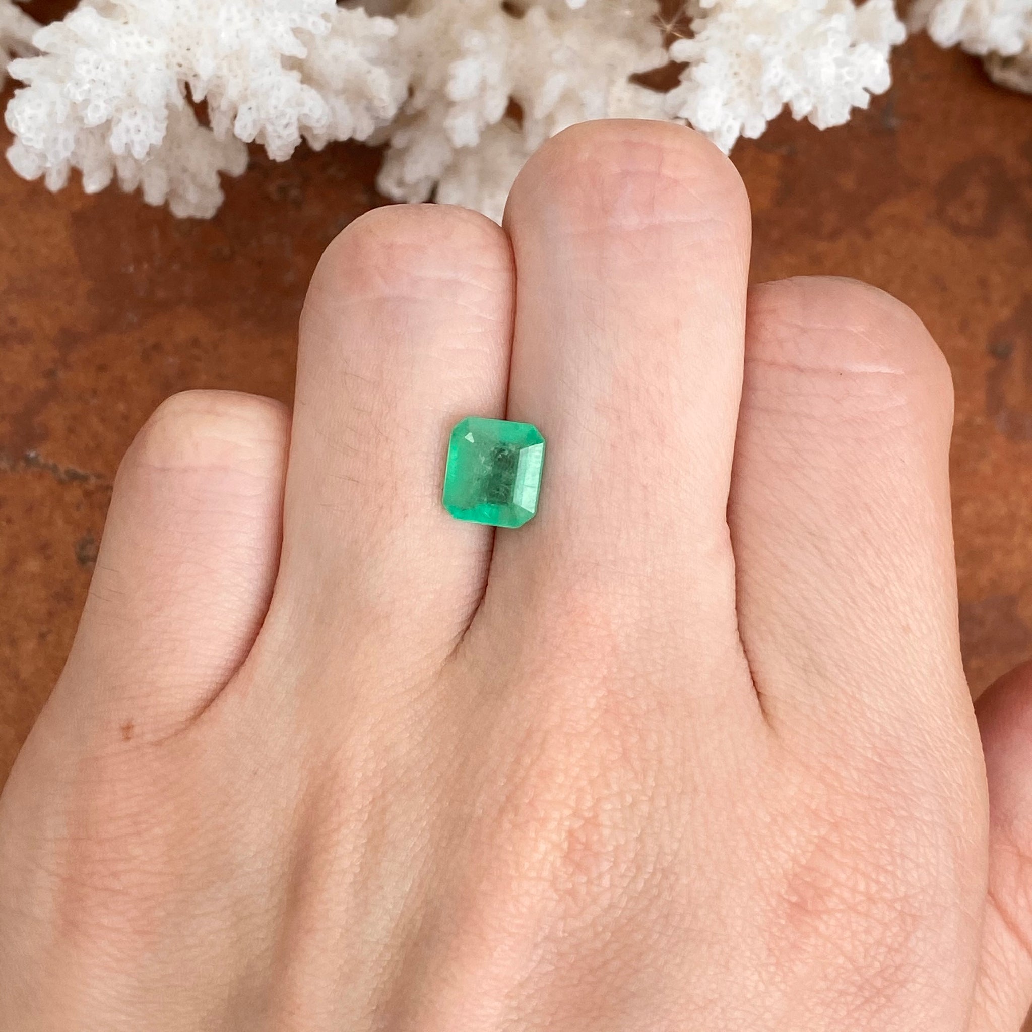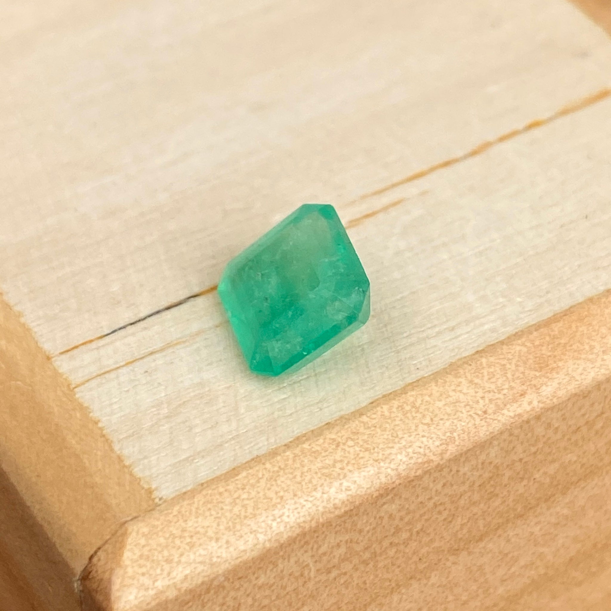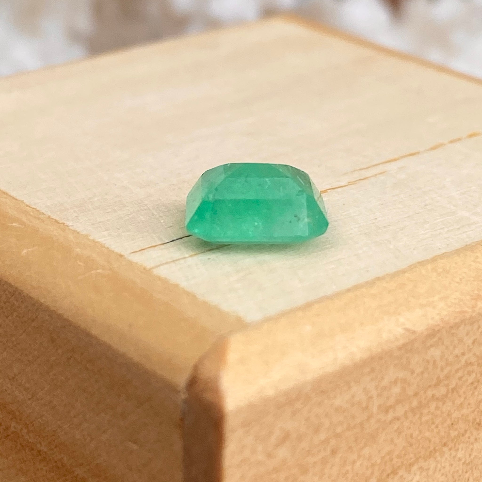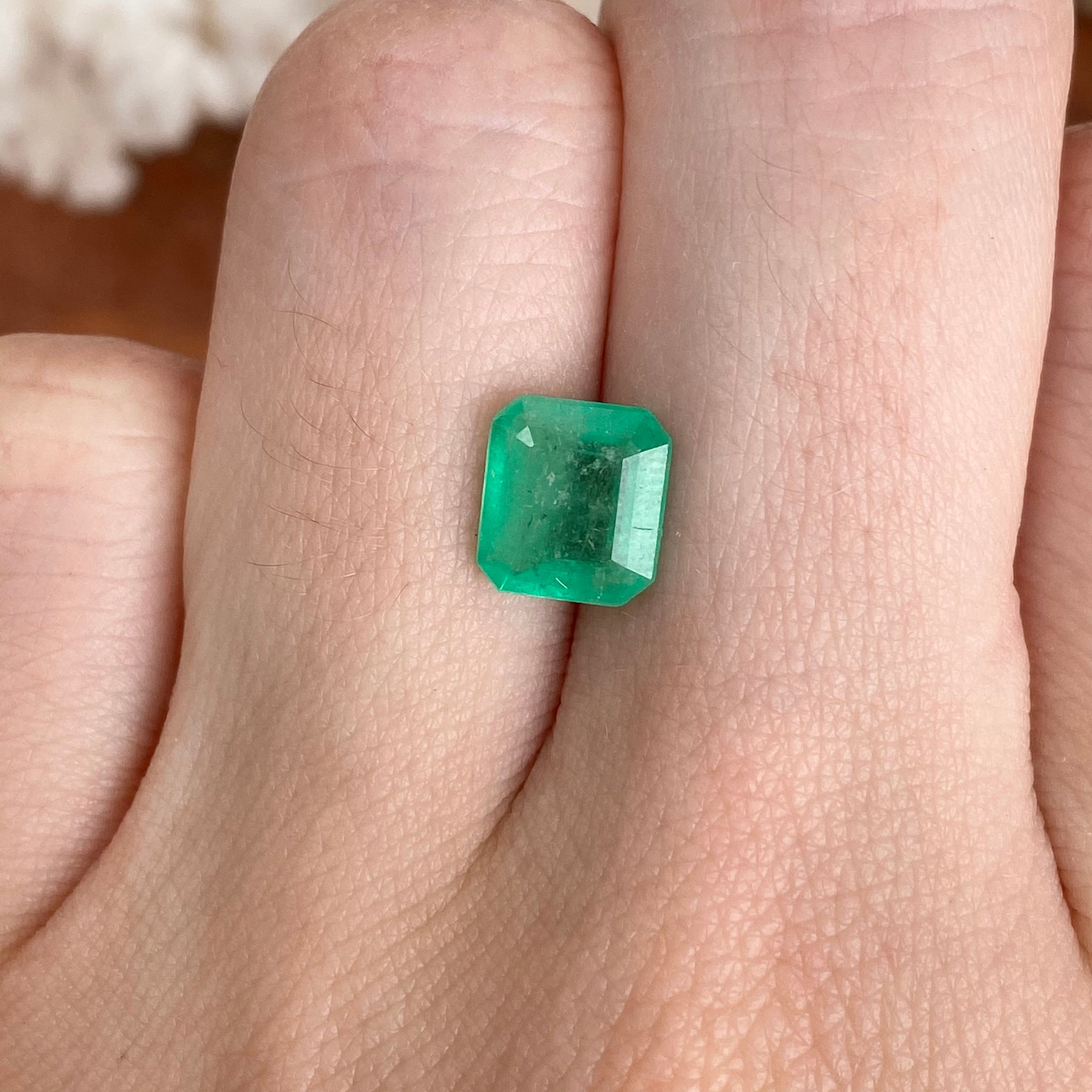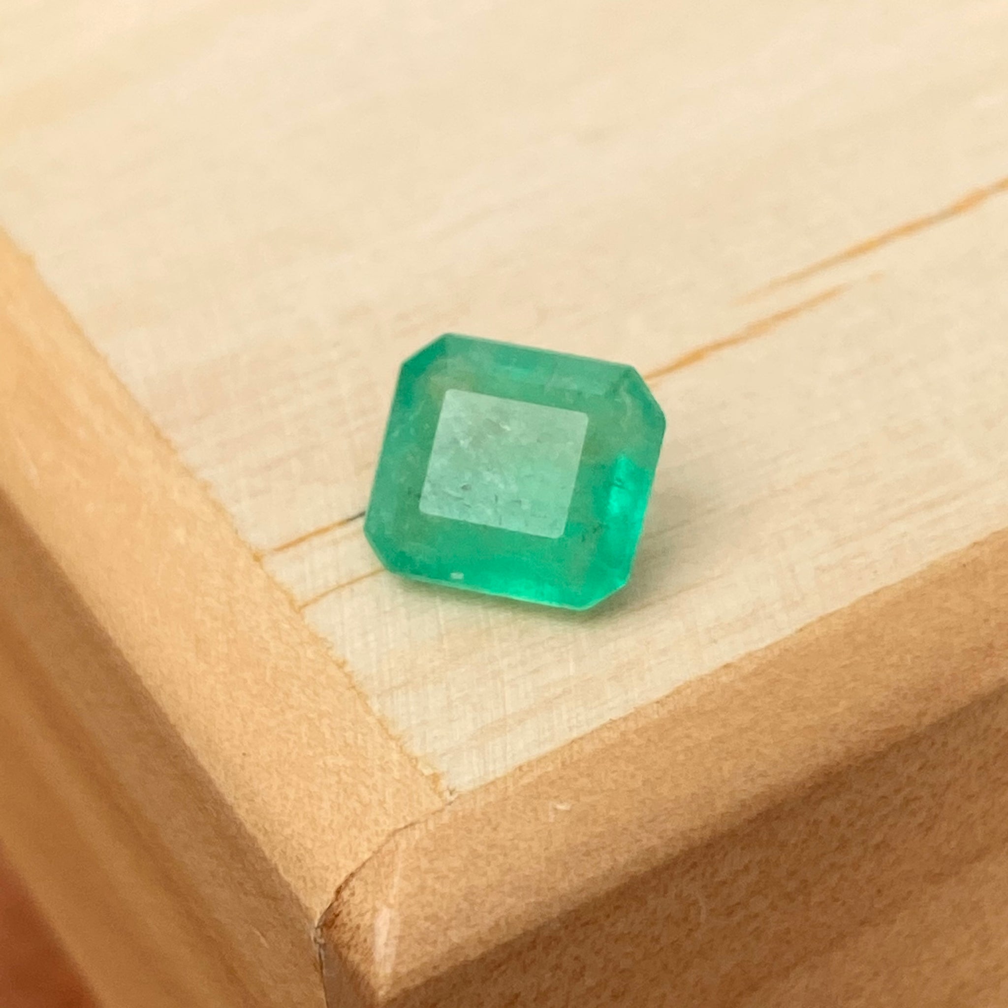 Faceted, emerald-cut loose emerald. Hand selected by Legacy Saint from Bogota, Colombia. Colombian emeralds are reputed as one of the most natural and beautiful gemstones in the world, and they are the only range of emeralds that are formed in sedimentary host rock instead of the igneous rock. Because of their natural state, they have the most coveted pure + vivid color. Excellent polishing, minimal oiling treatment.