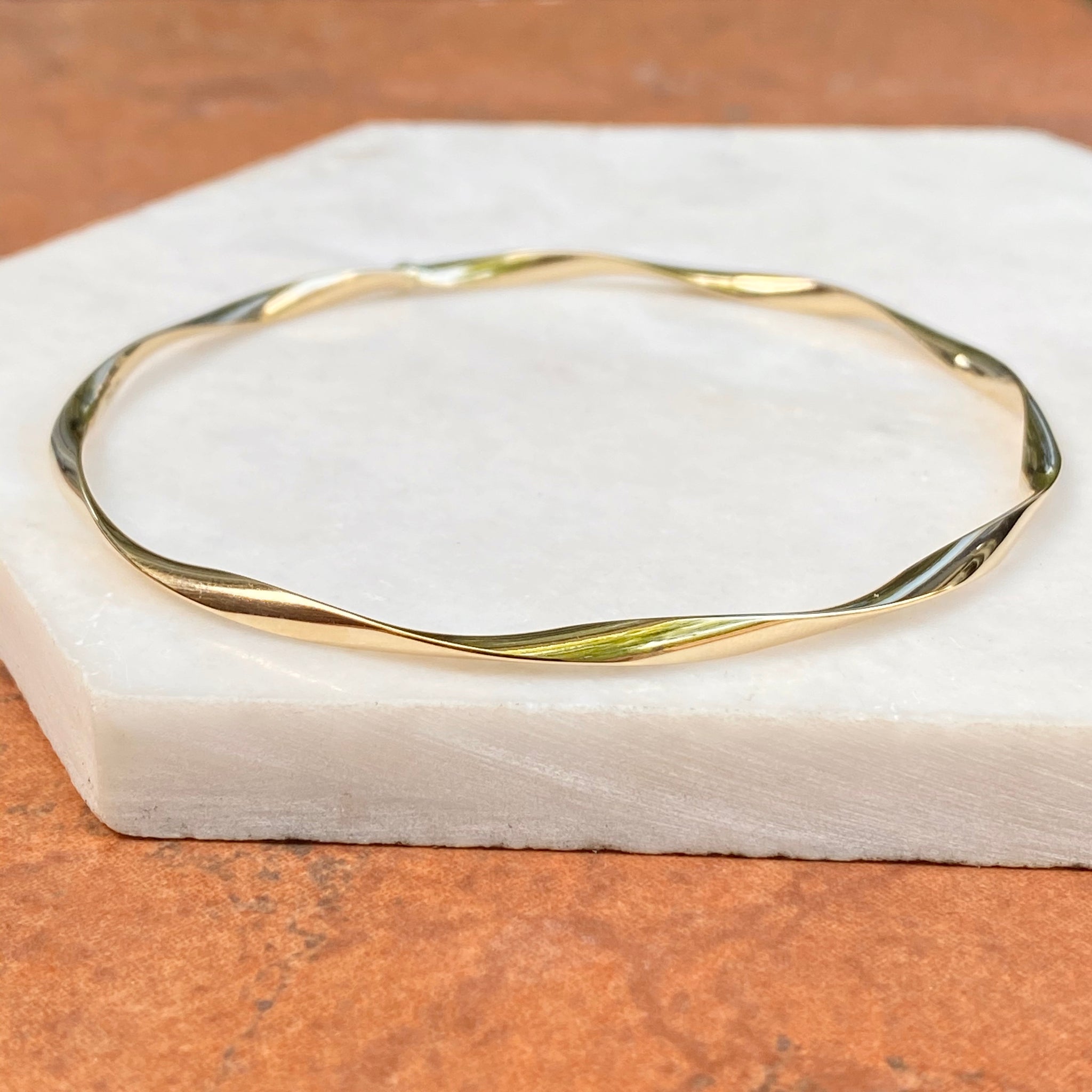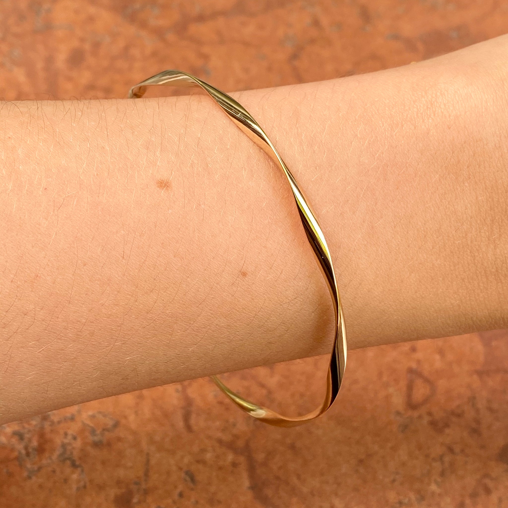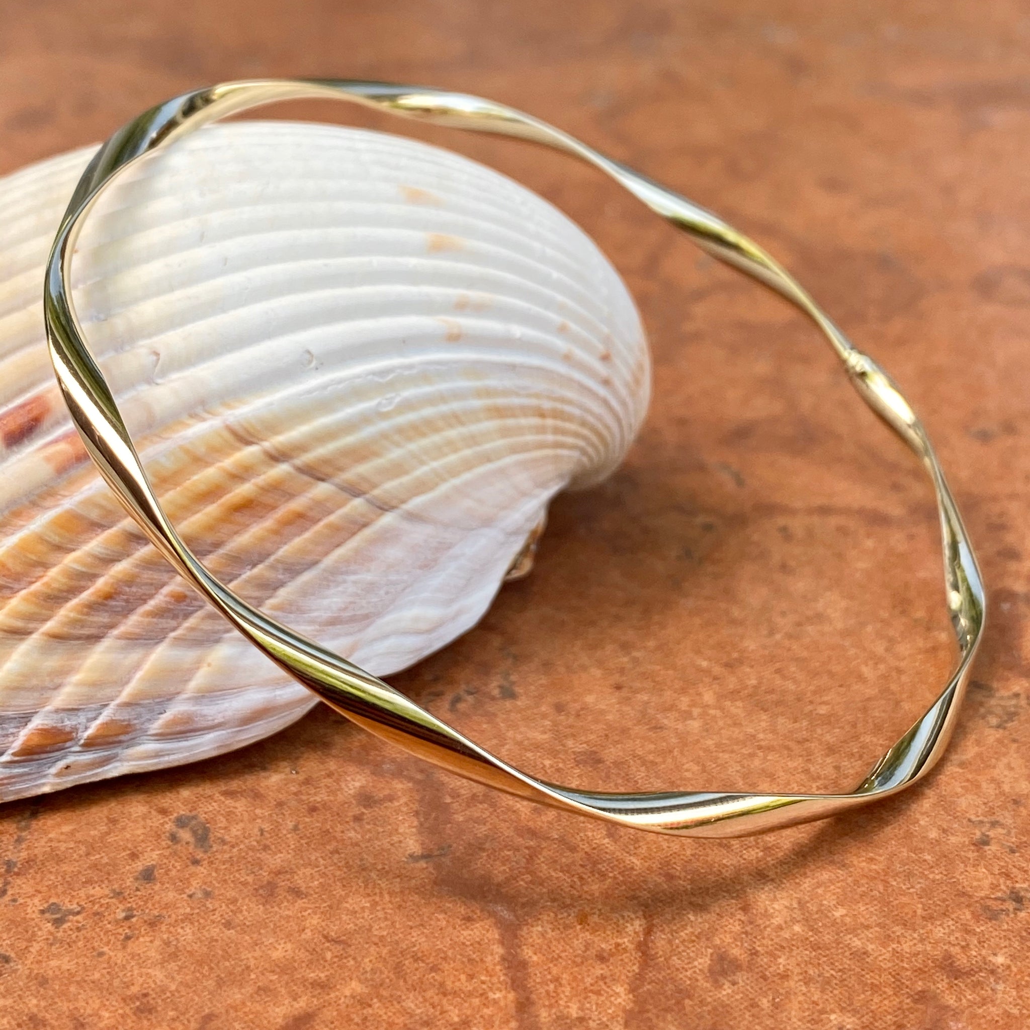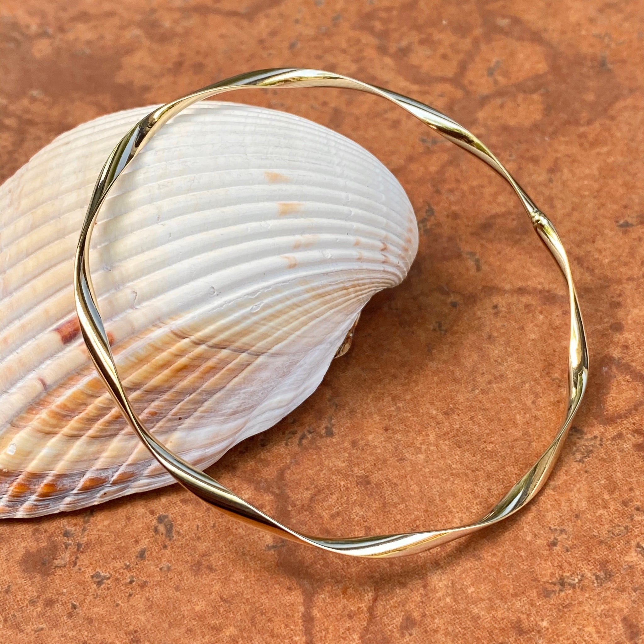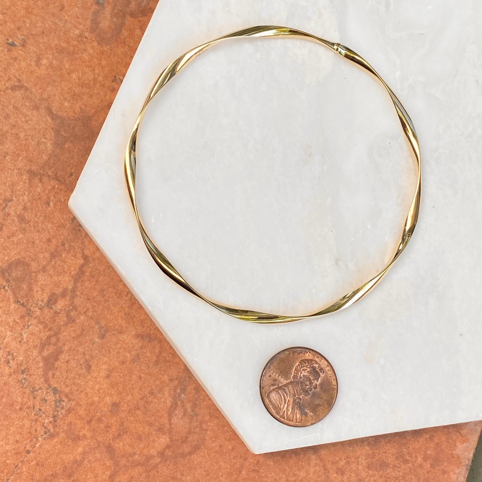 14KT Yellow Gold Twisted Round Slip On Bangle Bracelet
