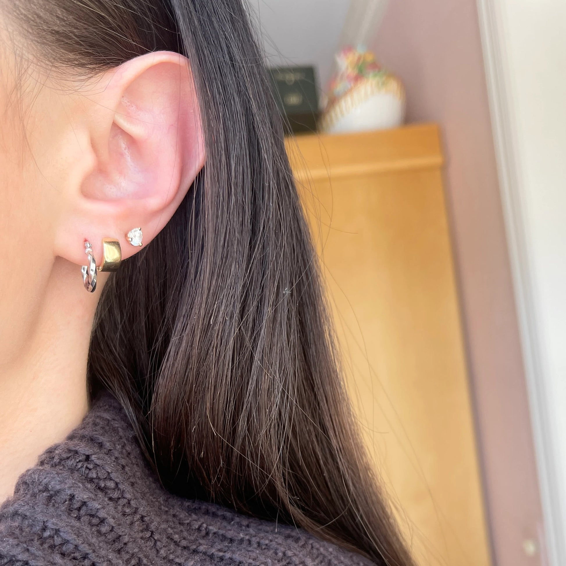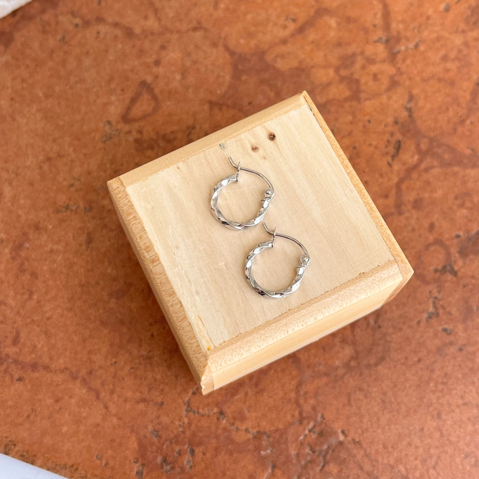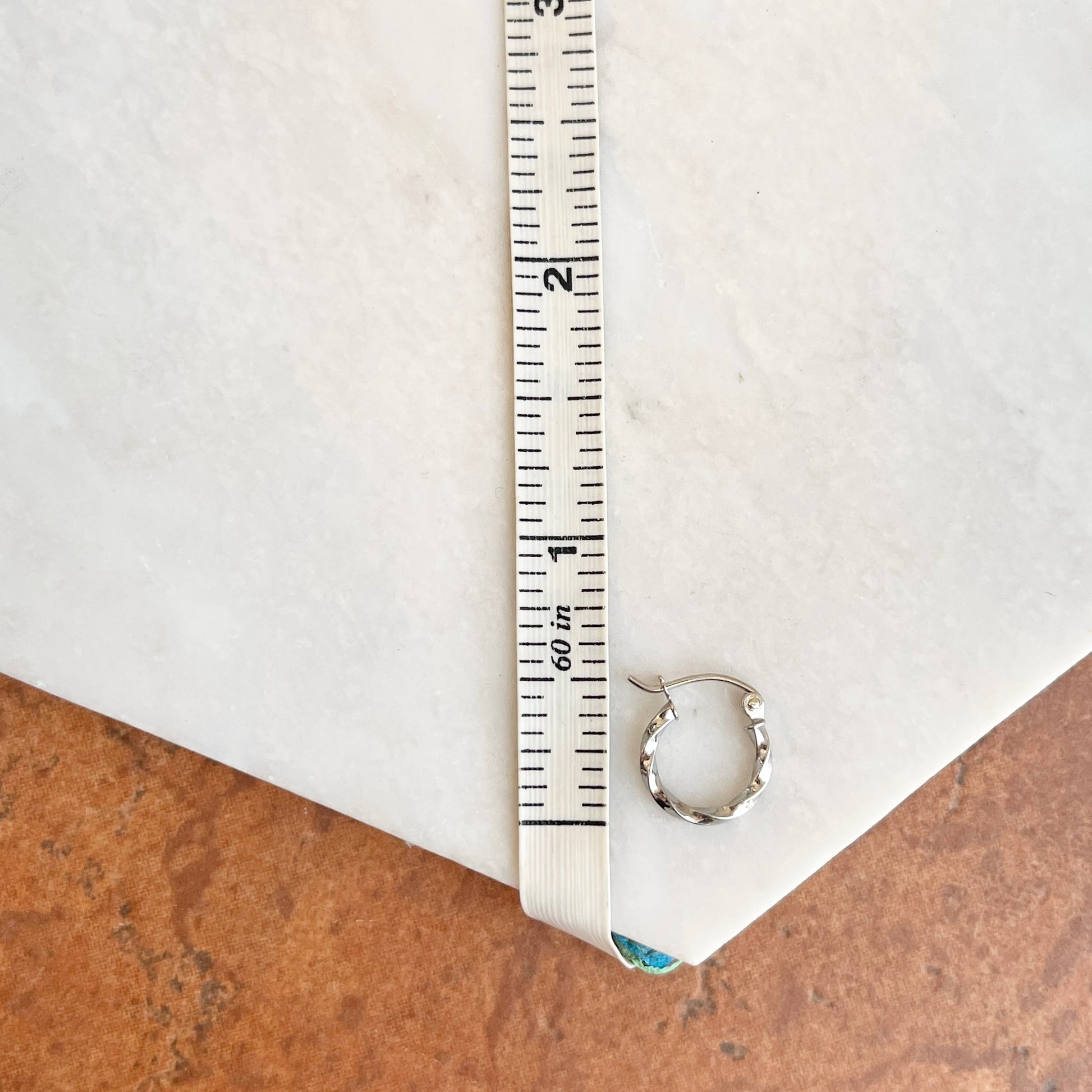10KT White Gold 2mm Twisted Tube Mini Hoop Earrings 12mm