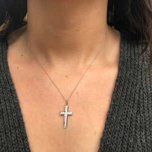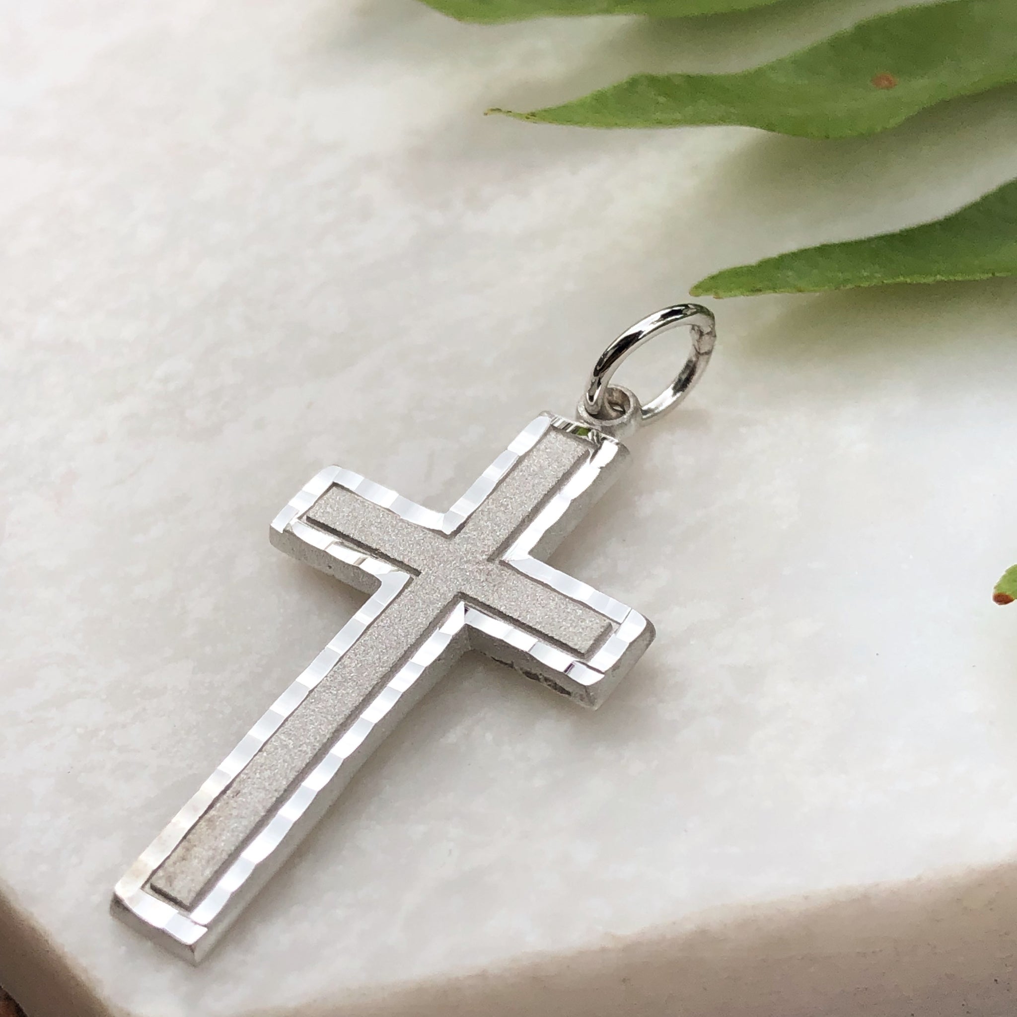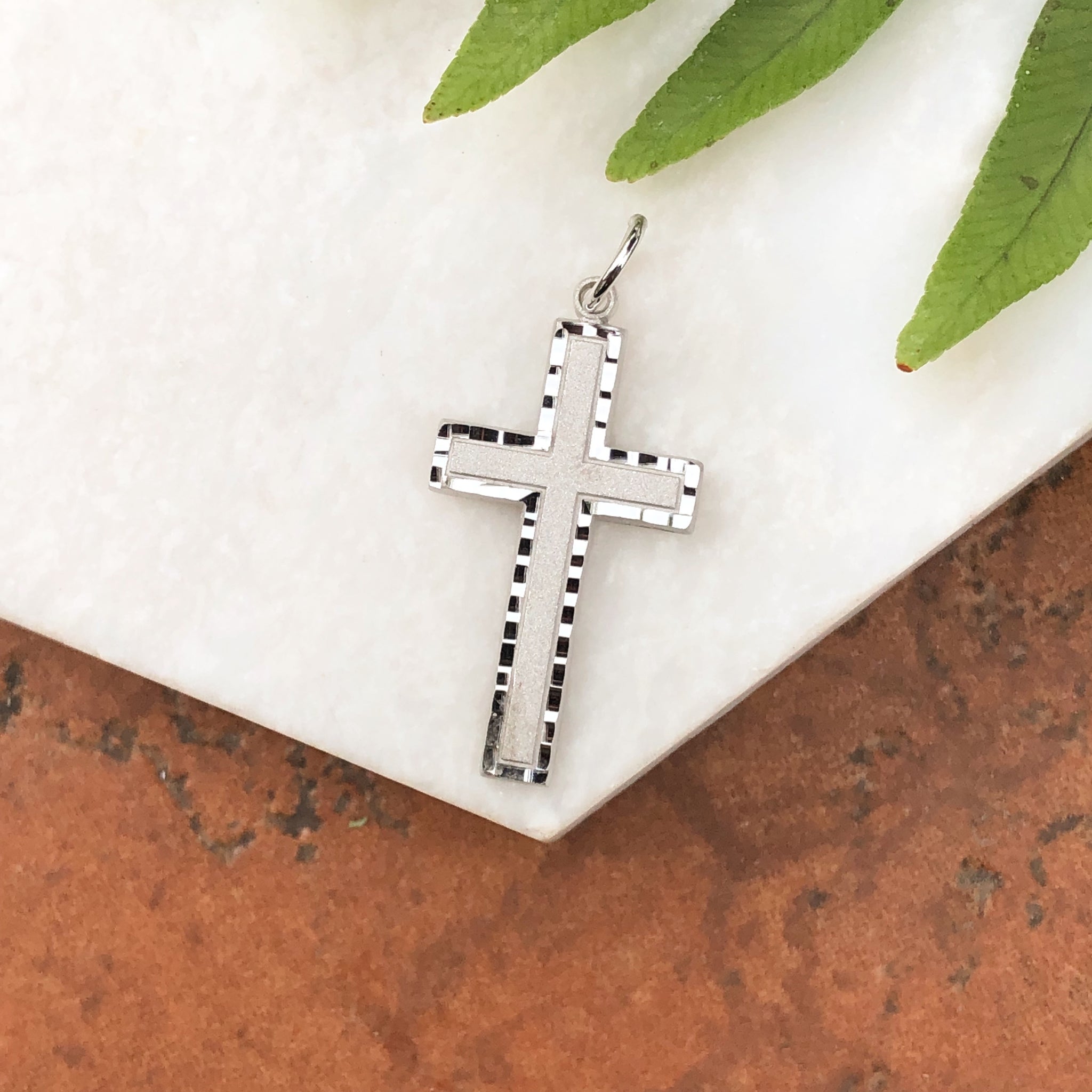 10KT White Gold Diamond-Cut Cross Pendant Charm