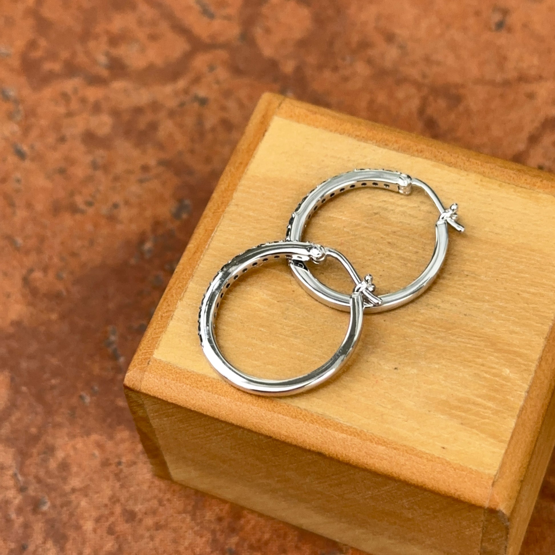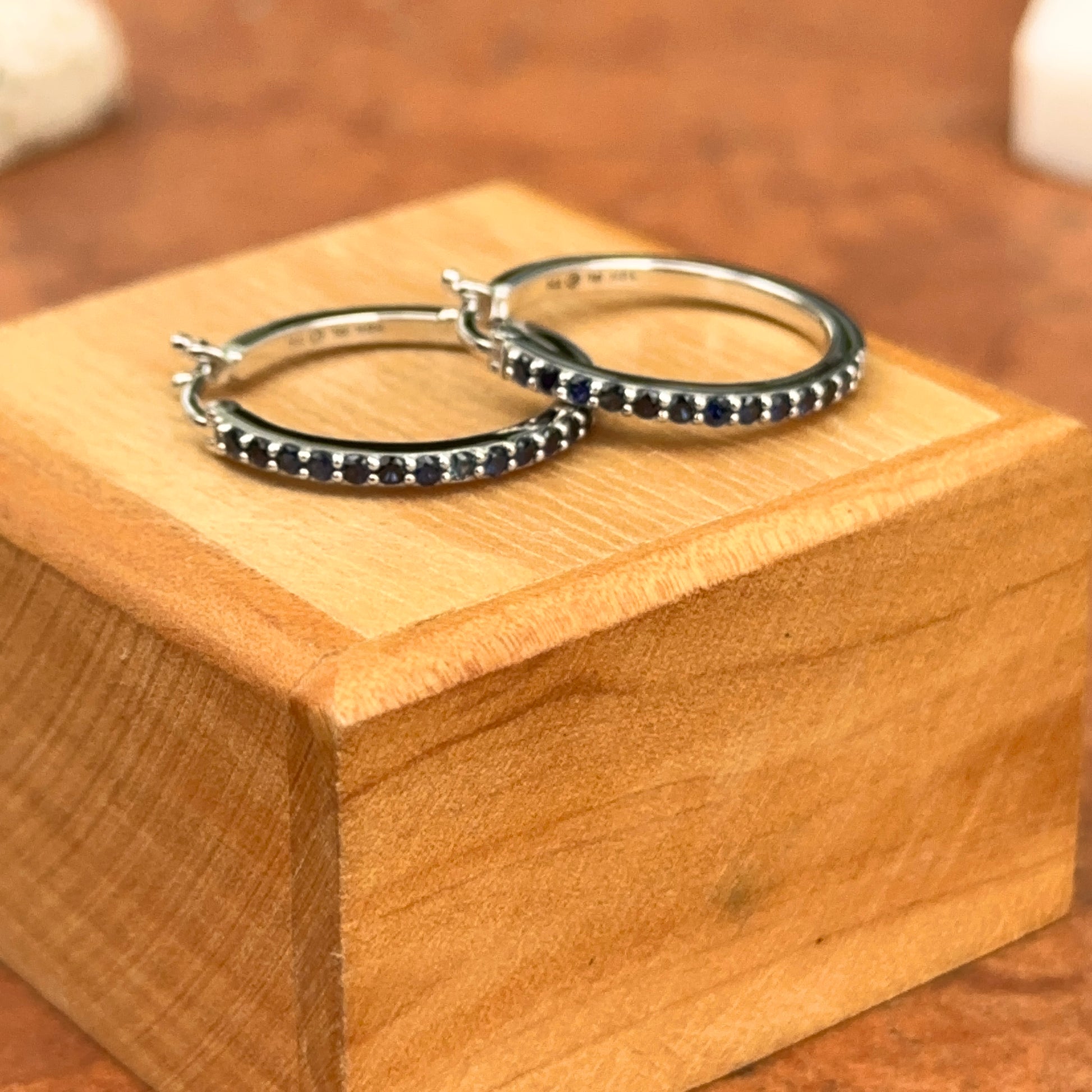 10KT White Gold Round Blue Sapphires Prong-Set Snap Back Hoop Earrings