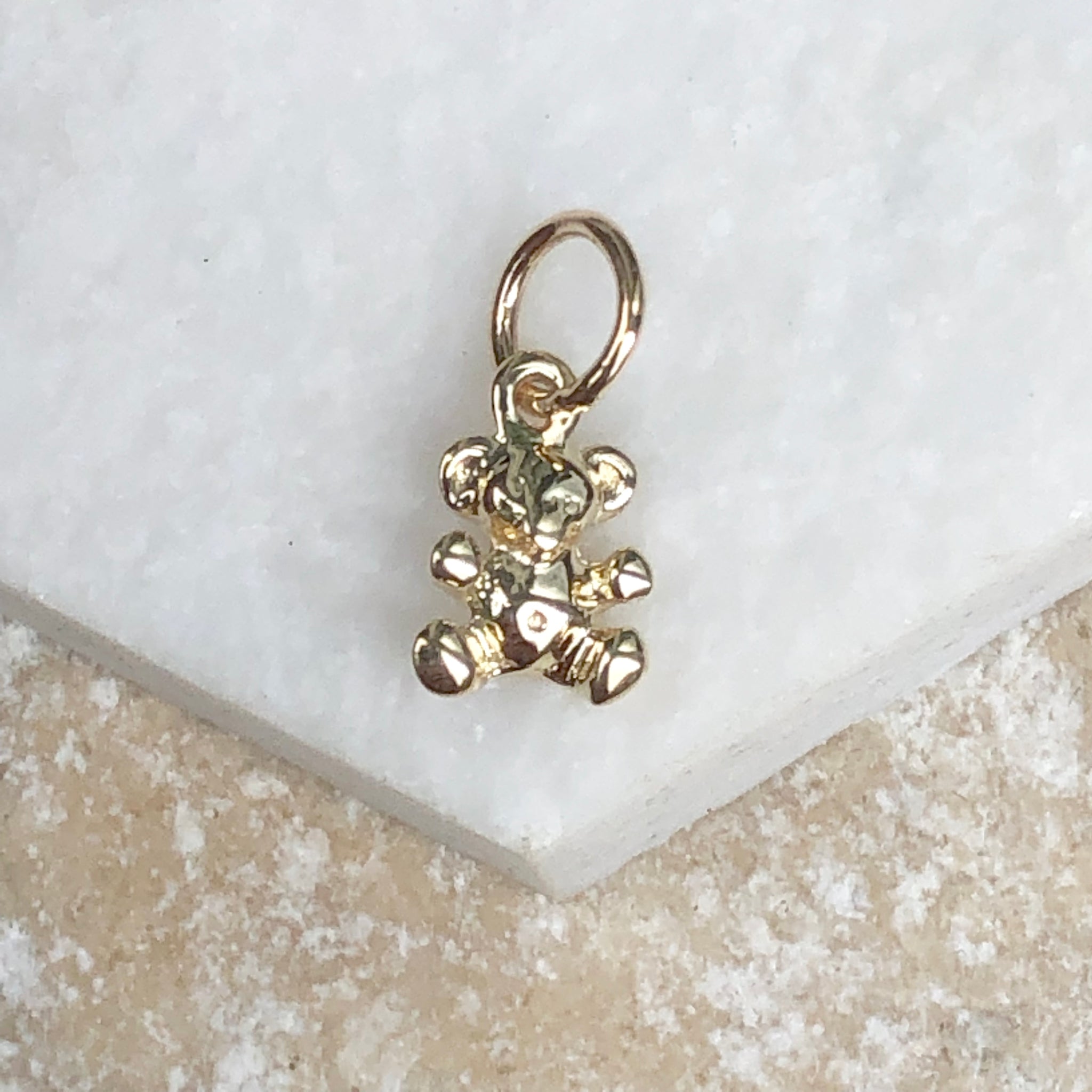 10KT polished yellow gold teddy bear. Perfect to add onto charm bracelet or wear alone on a chain!