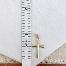 10KT yellow gold beveled cross pendant charm. Simply slide this pretty charm on a thin chain necklace or add it onto a charm bracelet! Chains sold separately.