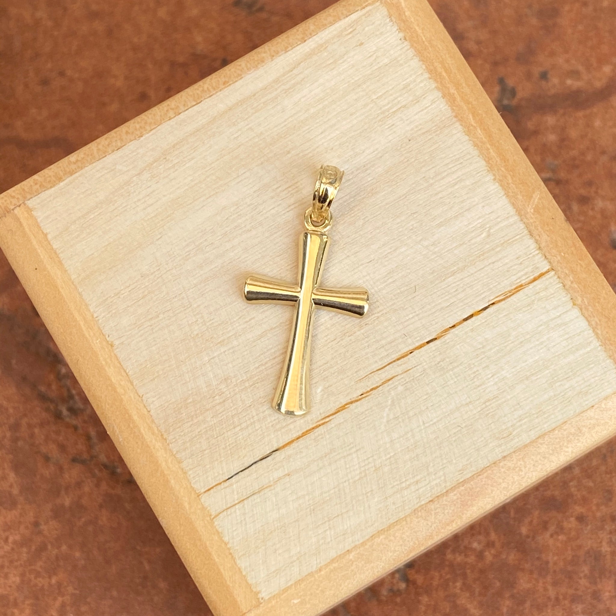 10KT Yellow Gold Beveled Cross Pendant Charm