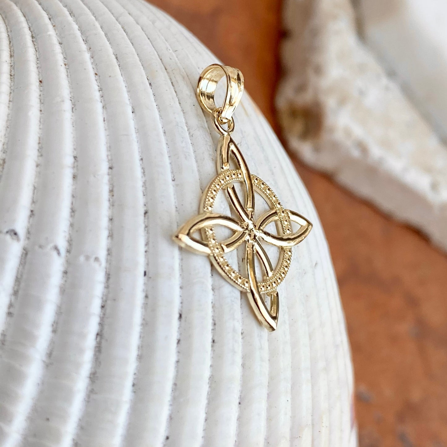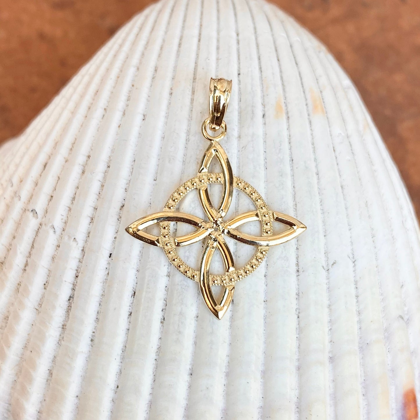 10KT yellow gold Celtic eternity knot with circle + cut-out design pendant charm. Necklace chain sold separately. Perfect gift for an Irish/Scottish lass!