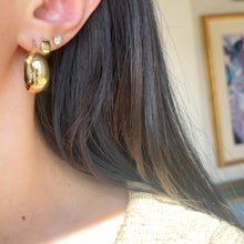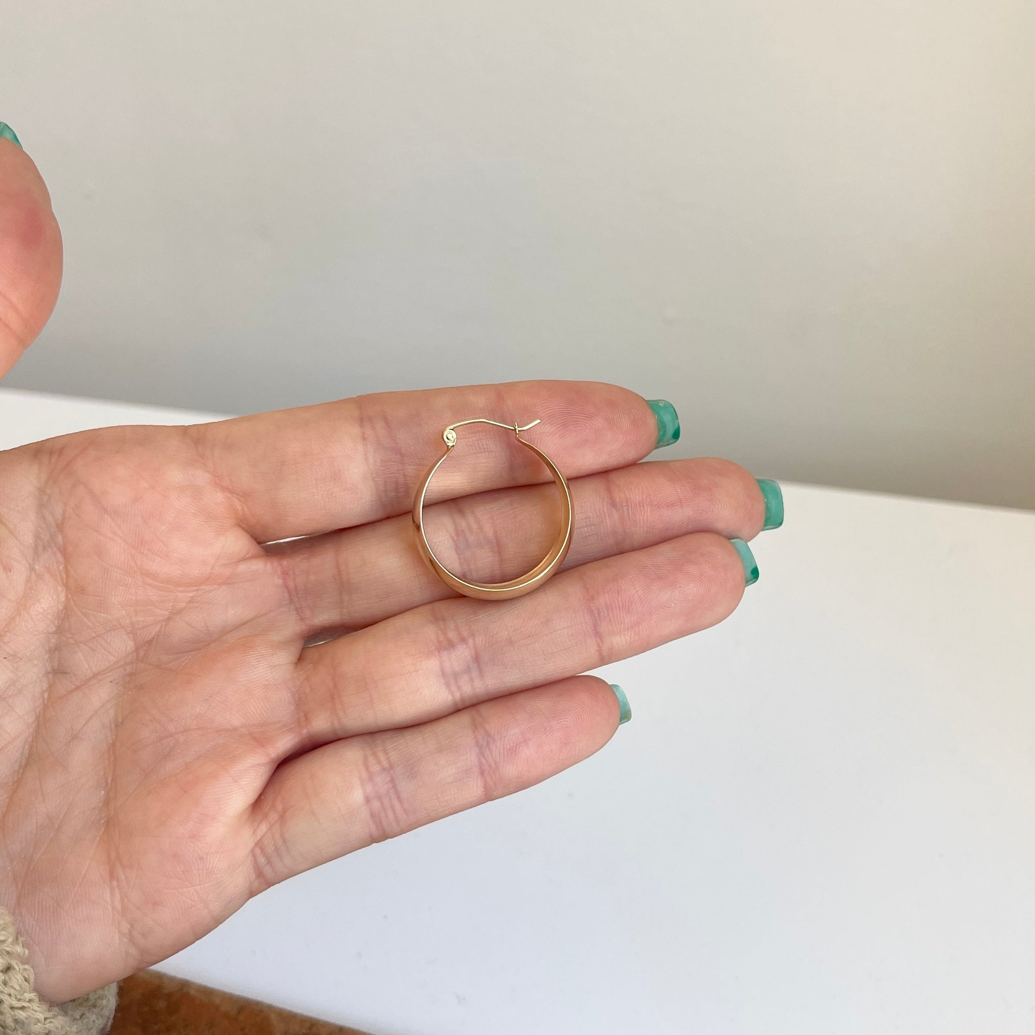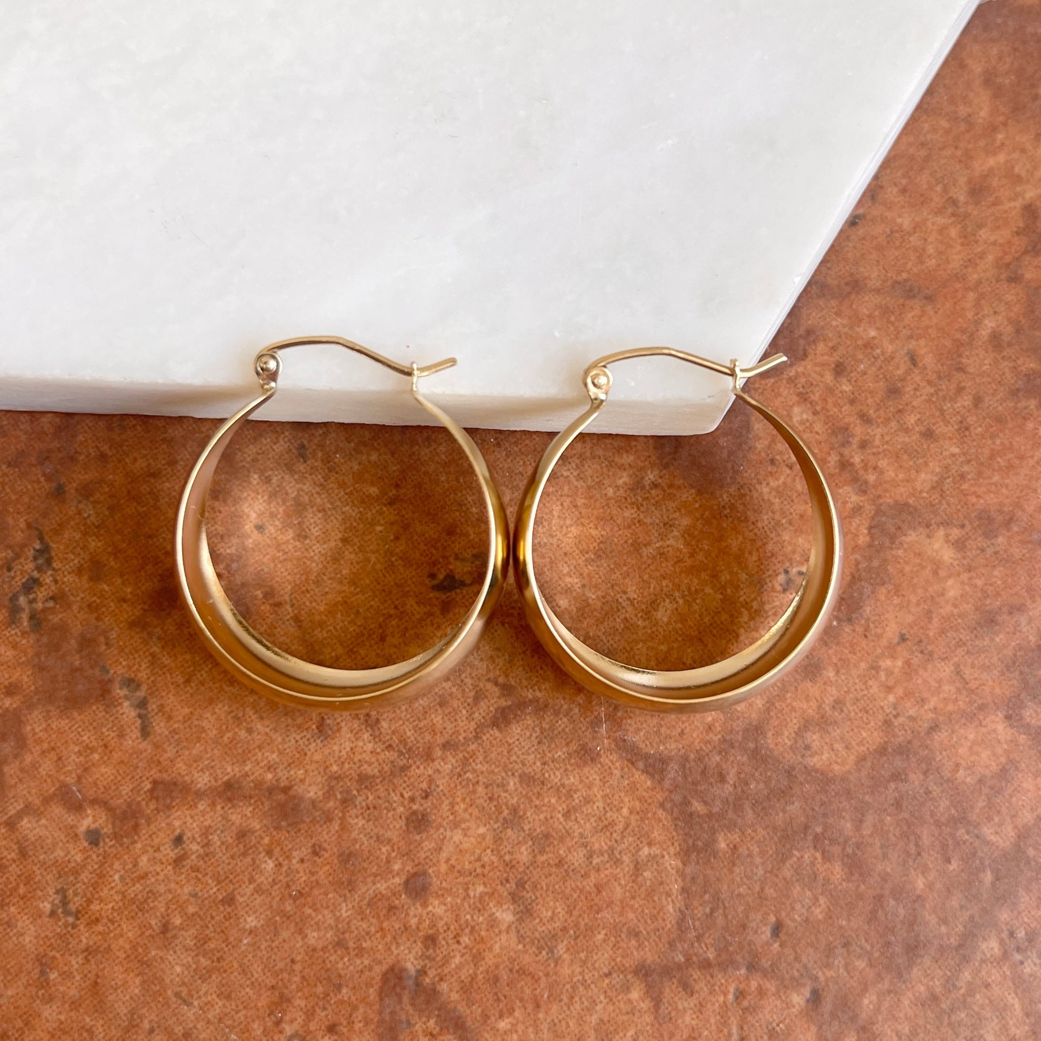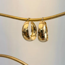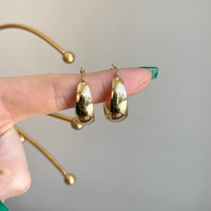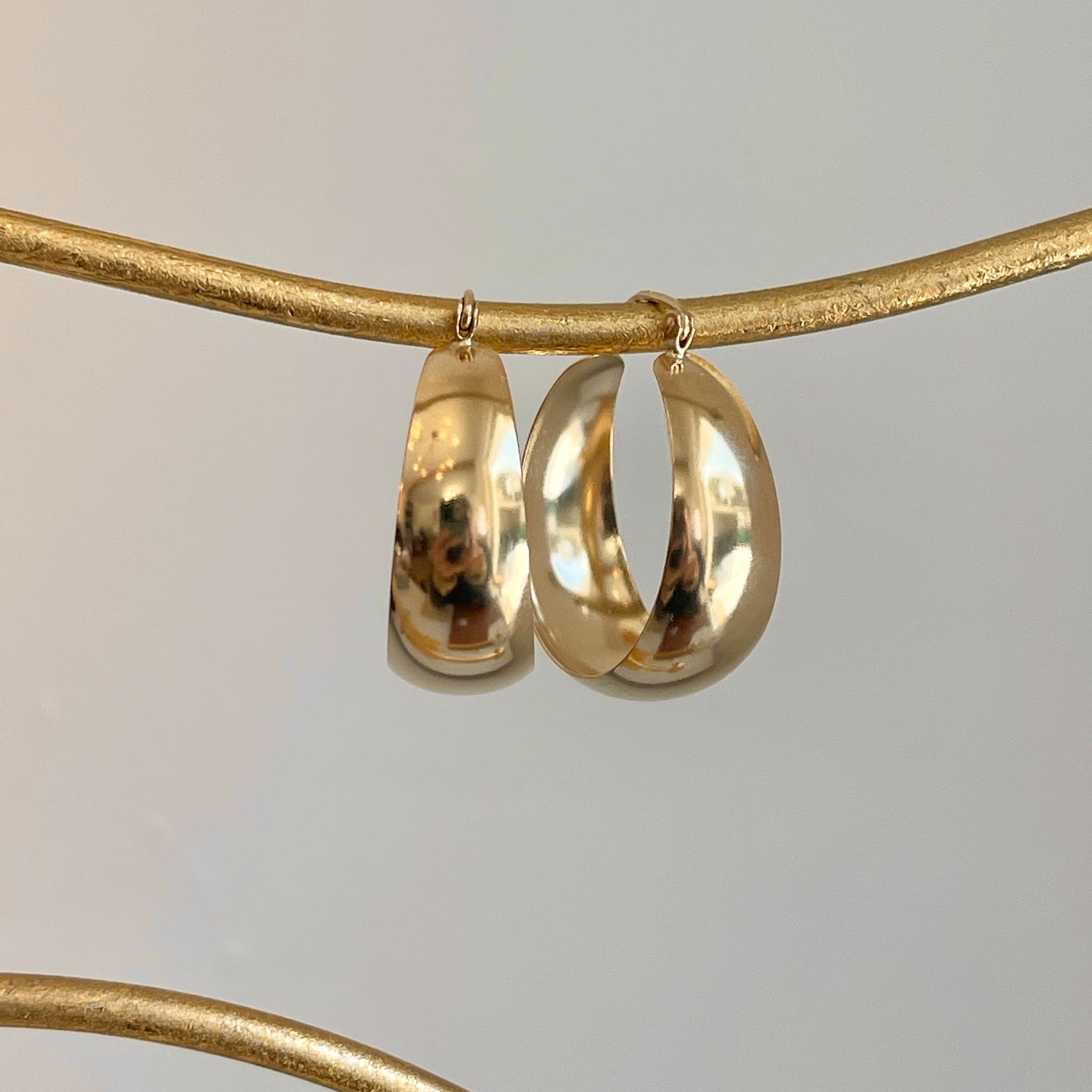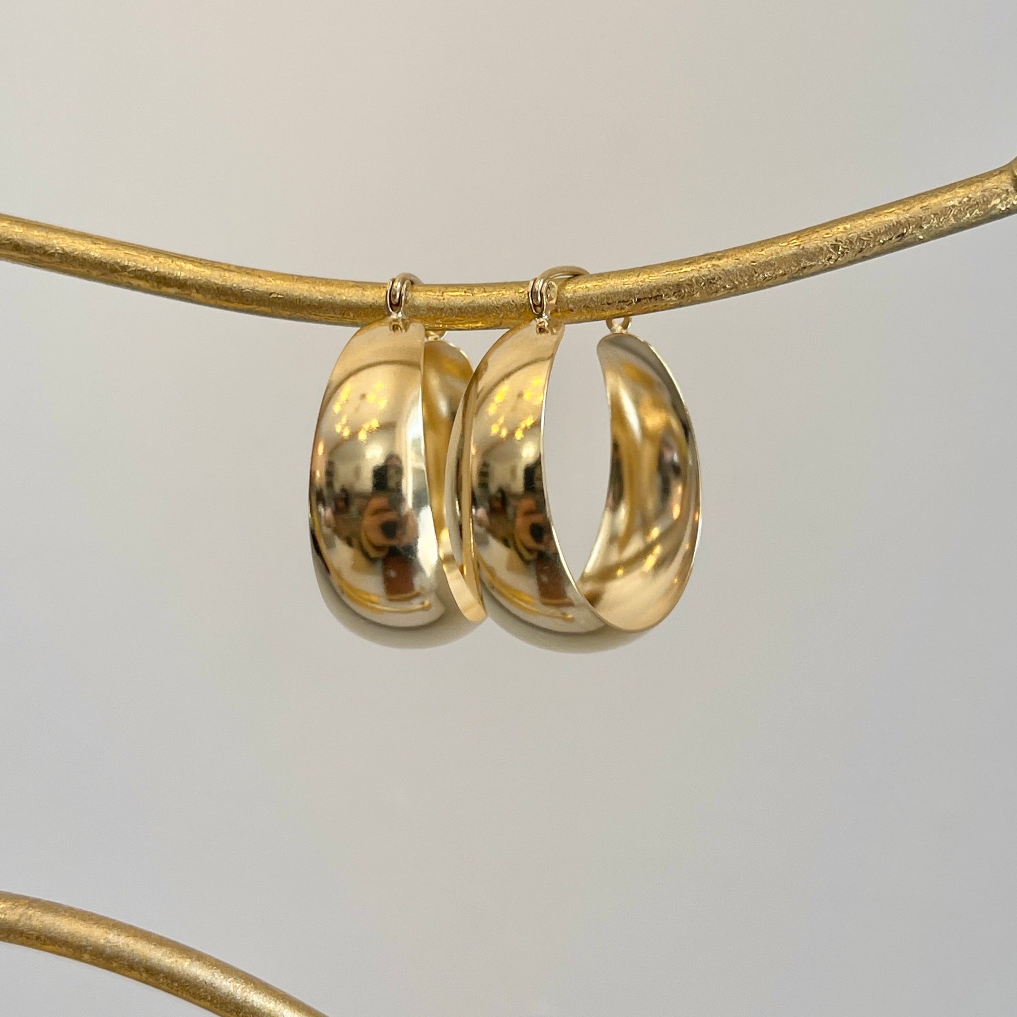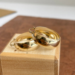 10KT yellow gold wide + chunky, tapered hoop earrings. Medium size round hoops with yummy chunkiness to make a statement. Also available in 14k.