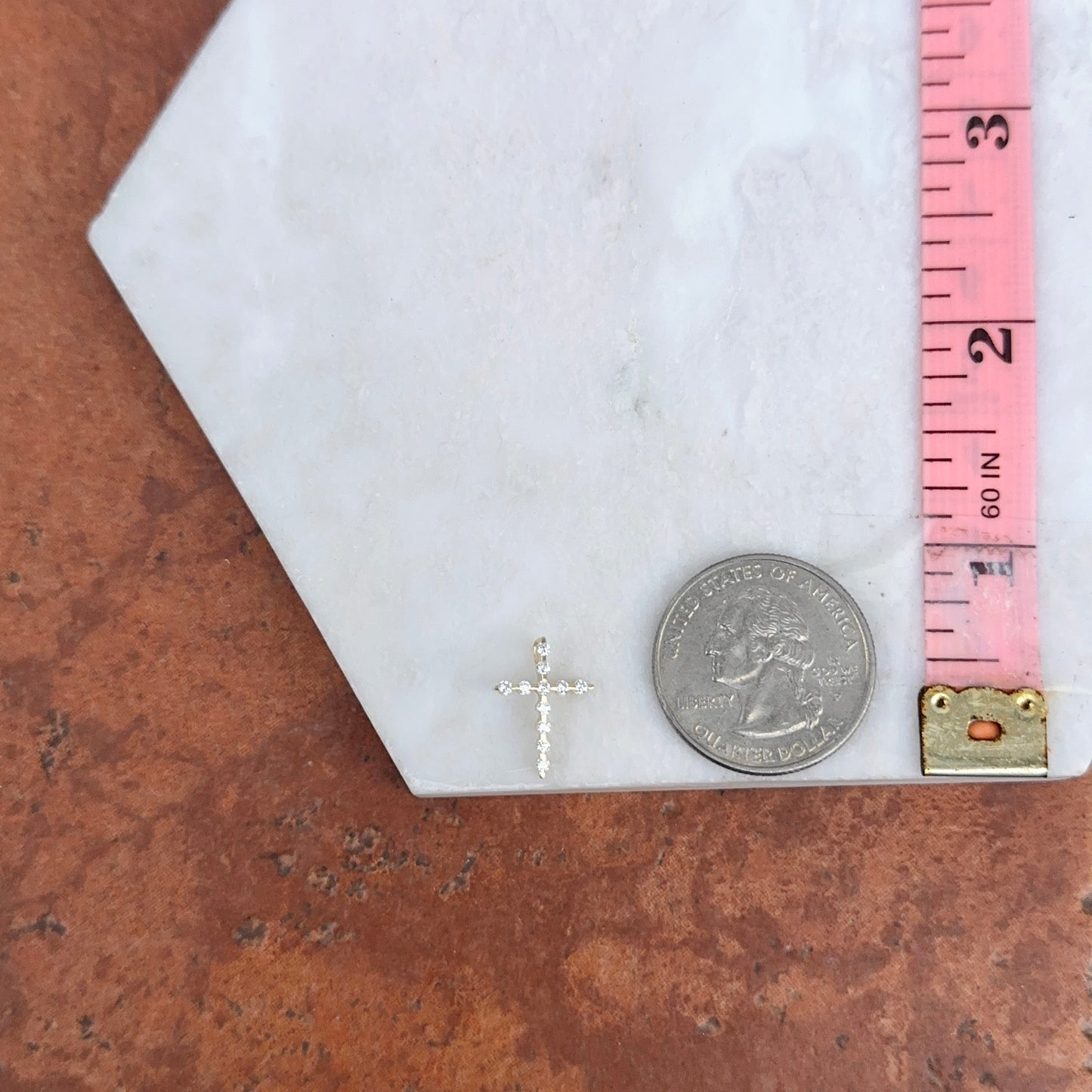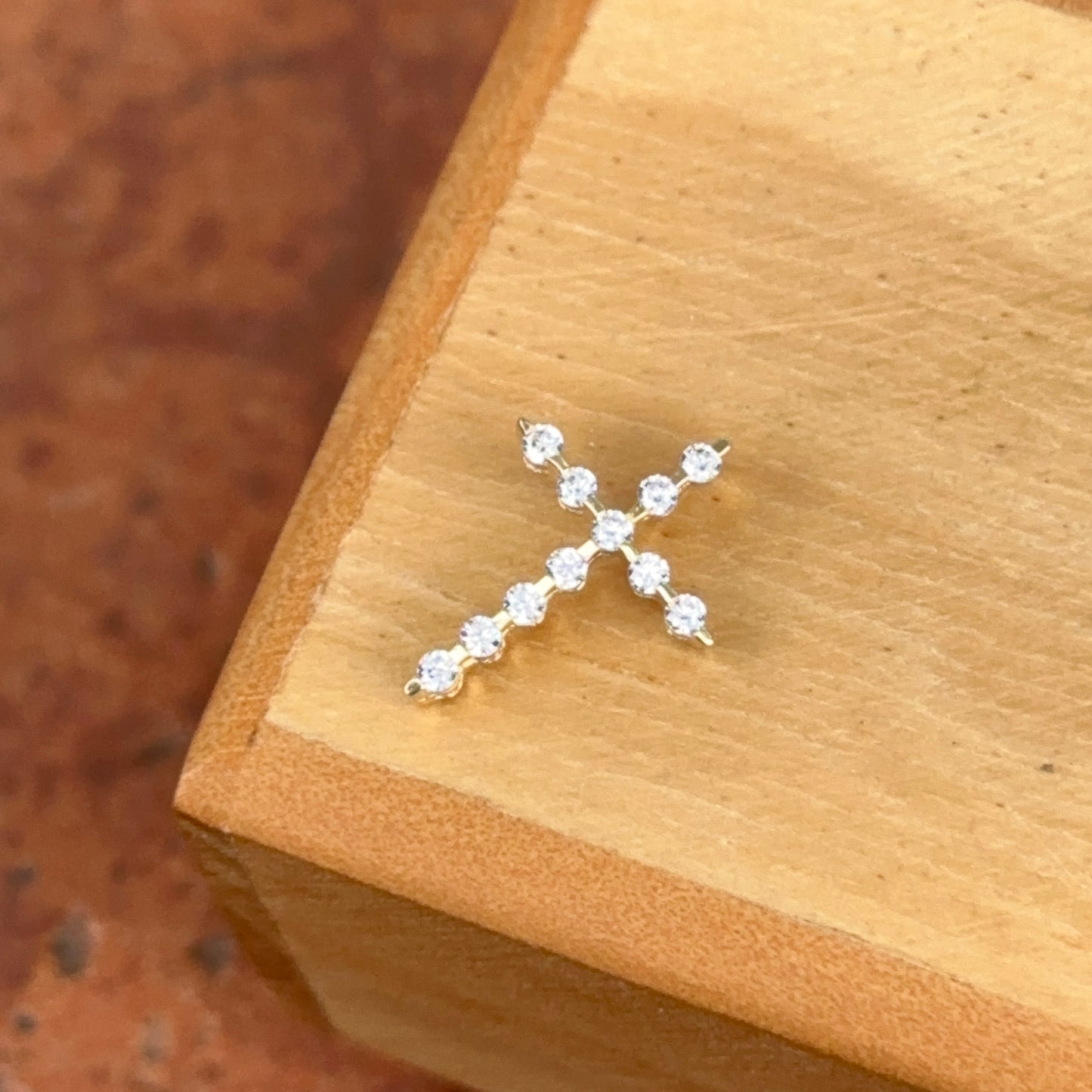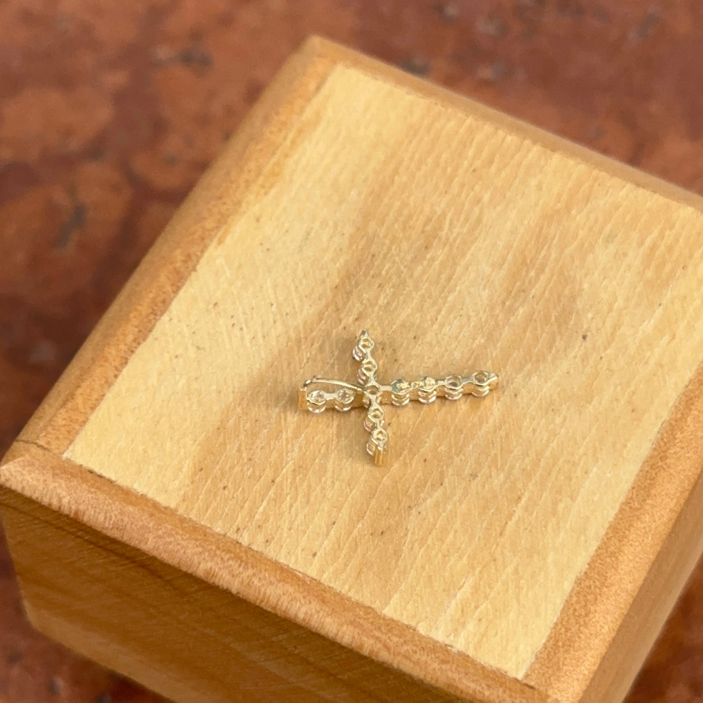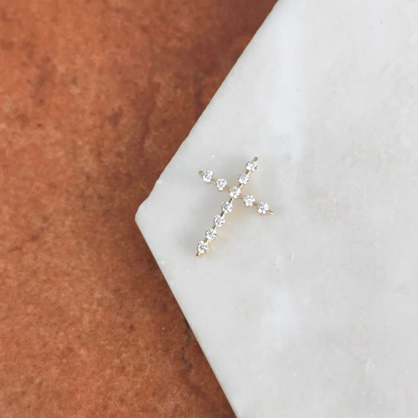 10K yellow gold minimally designed cubic zirconia stone cross pendant slide.