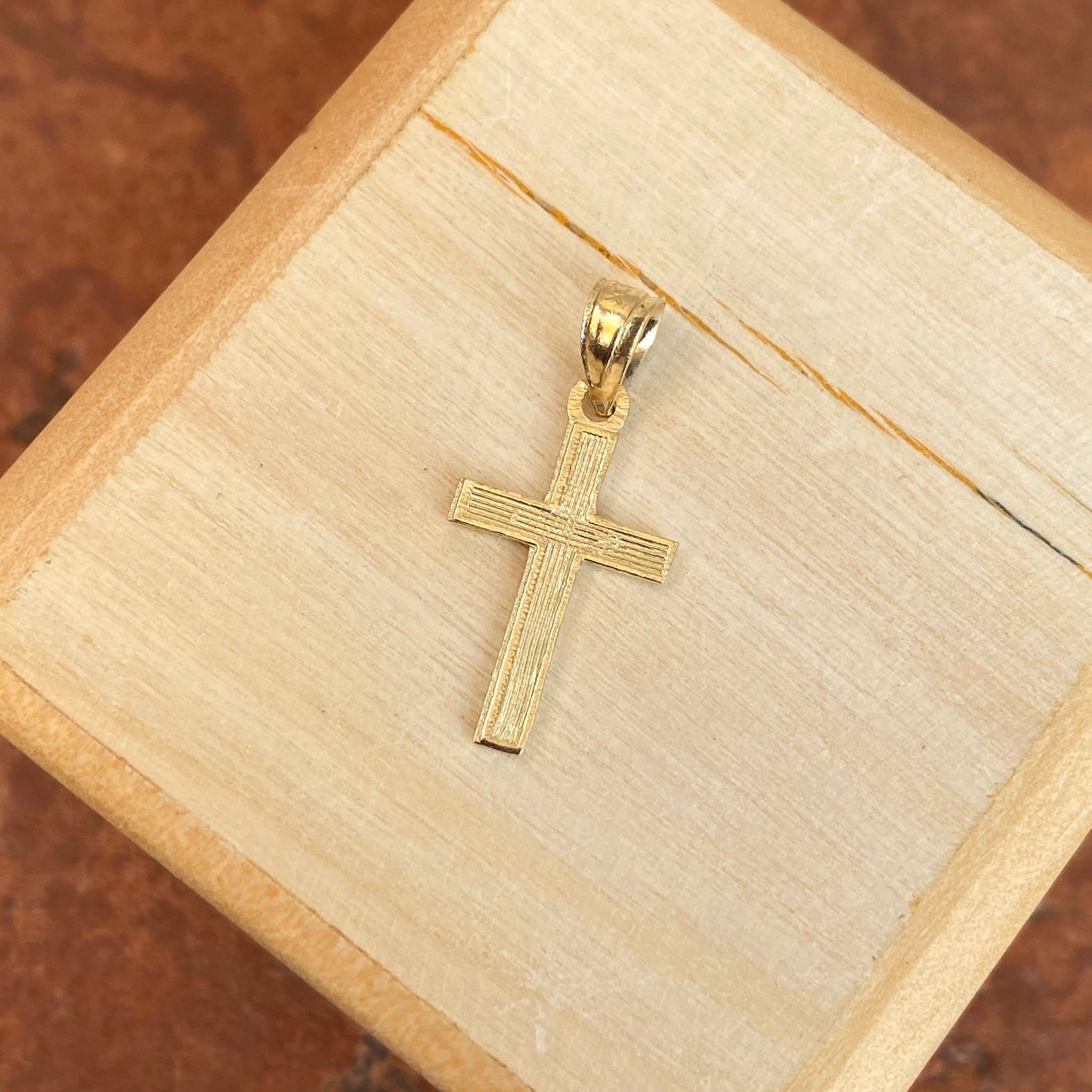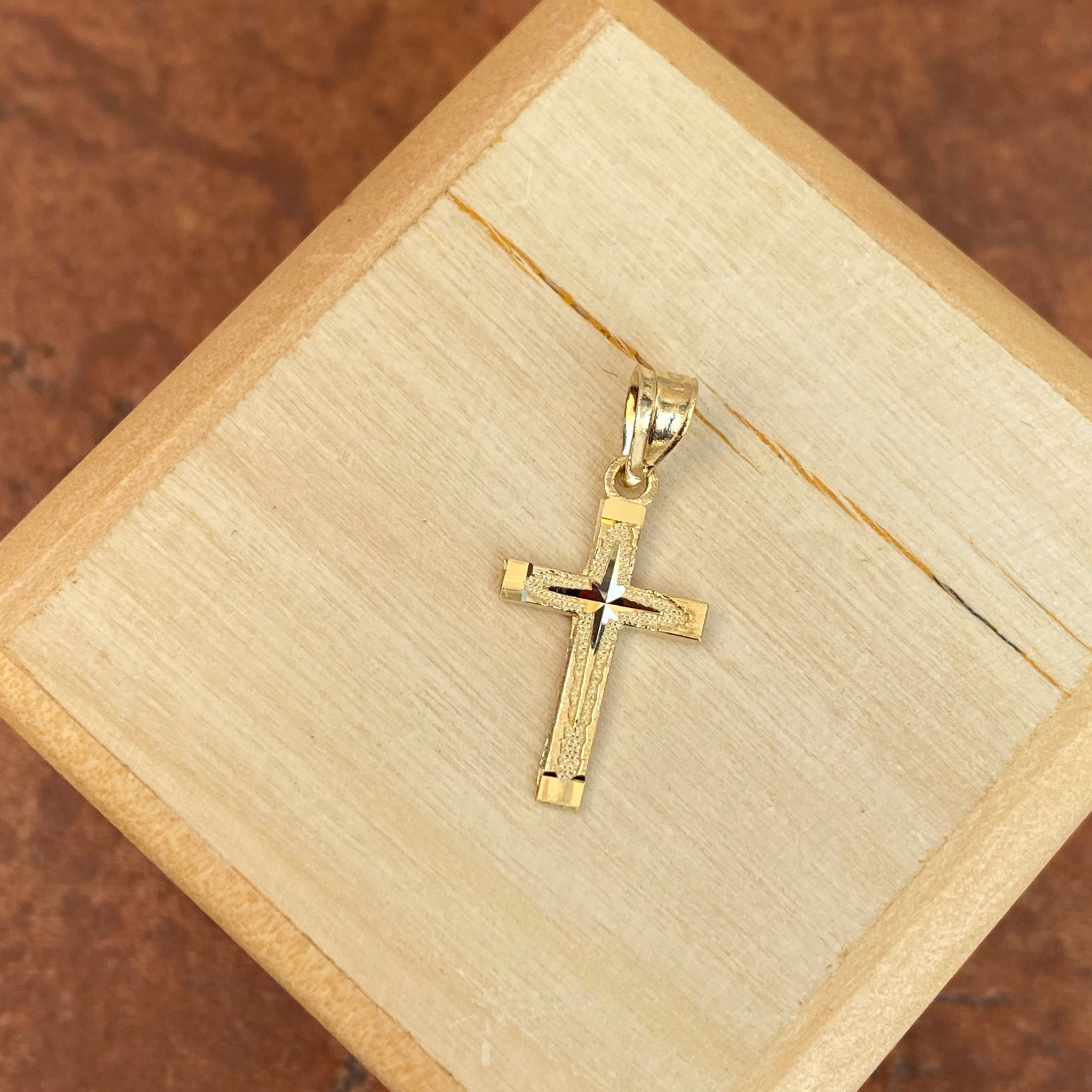 10KT yellow gold diamond-cut cross, mini-size pendant charm. Pretty charm would be a great addition to a charm bracelet or worn alone on a light chain.