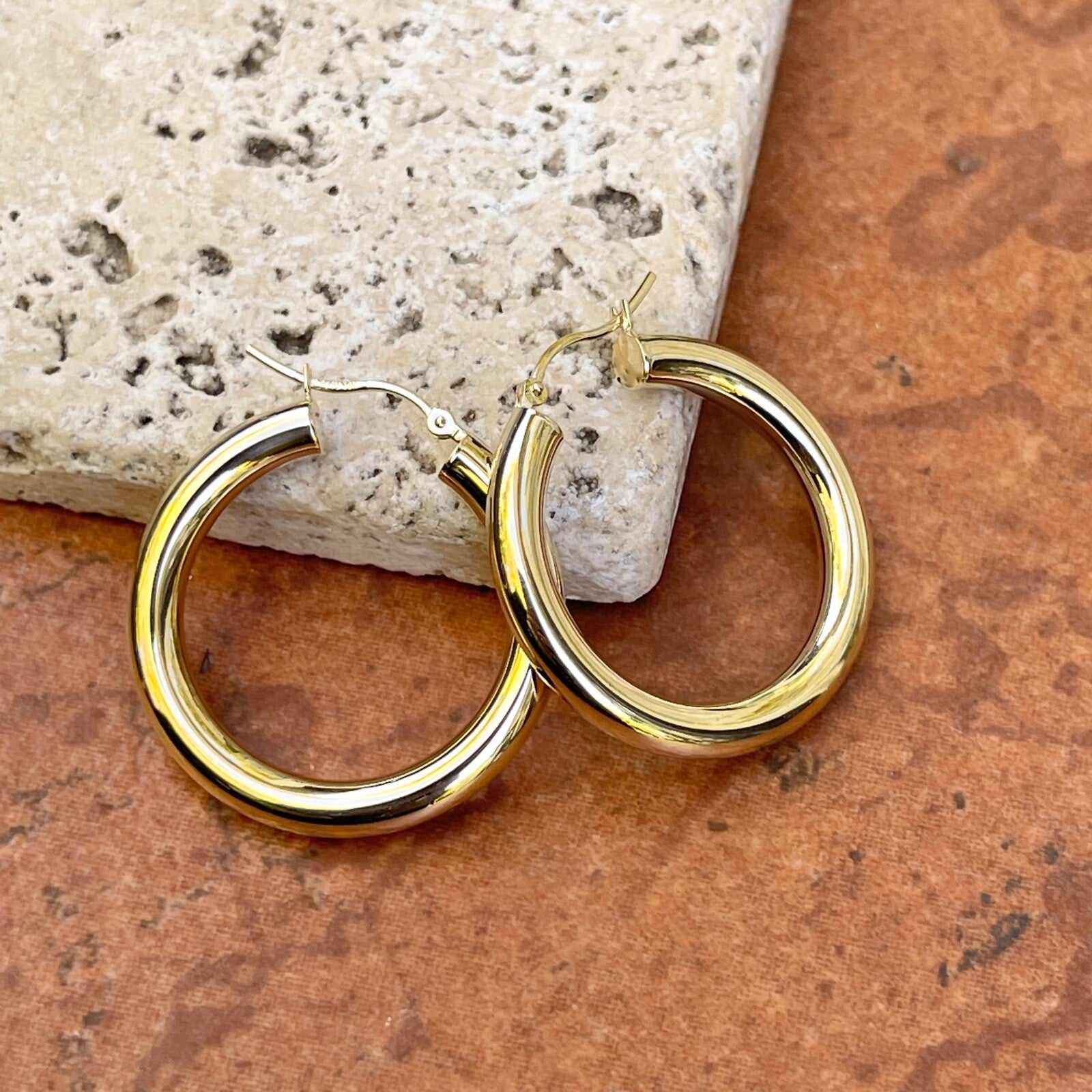 10KT Yellow Gold 4mm Tube Hoop Earrings 29mm