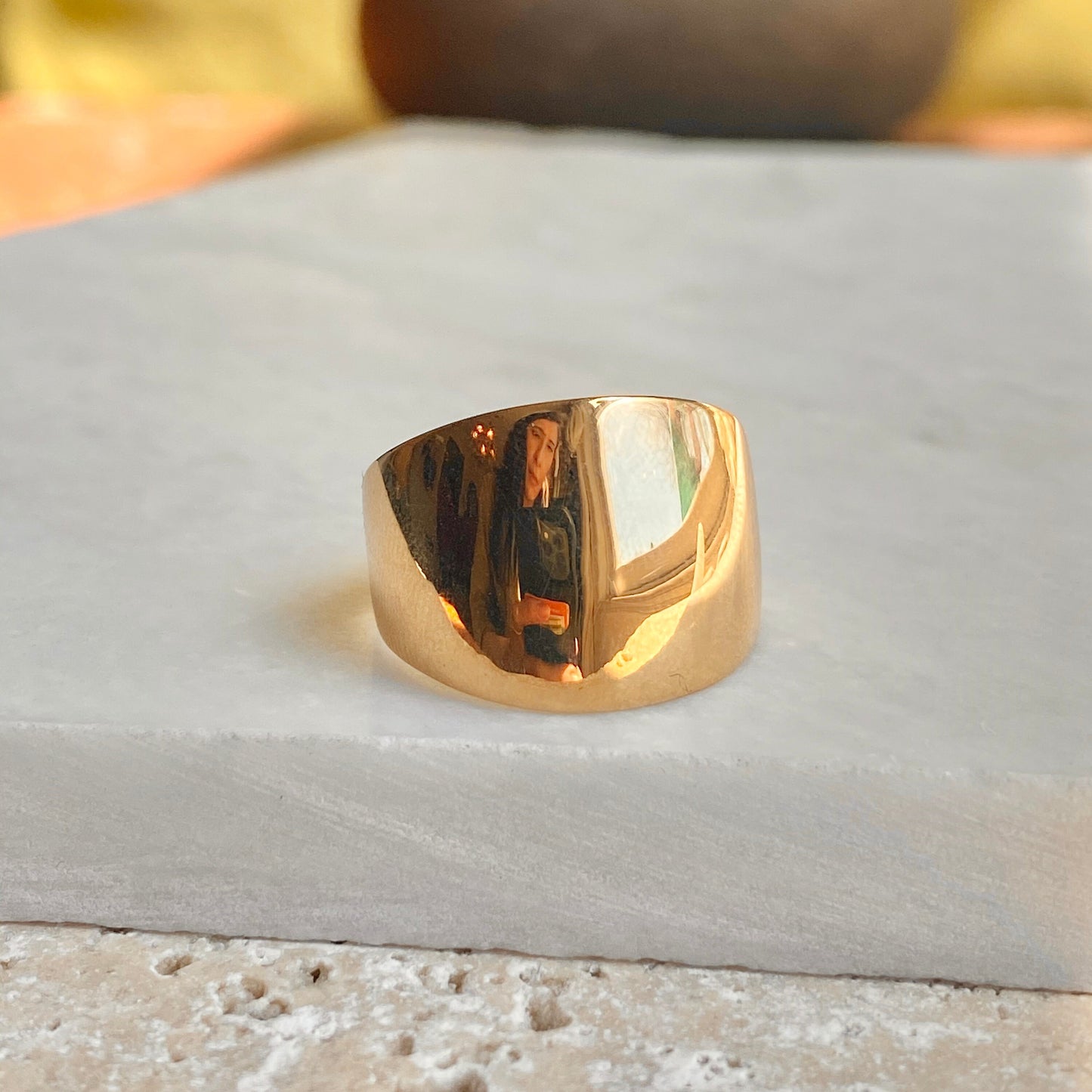 10KT Yellow Gold High Polished Shiny Dome Design Wide Cigar Band Ring