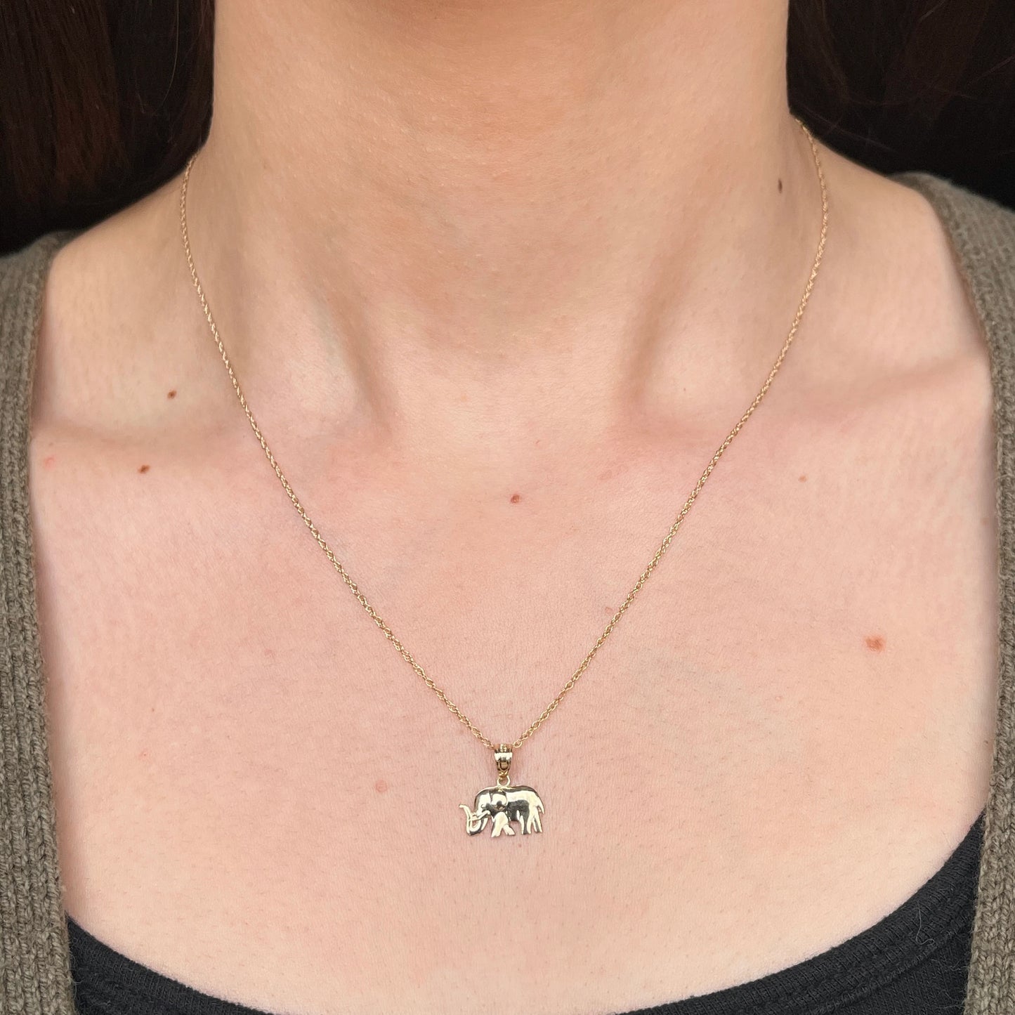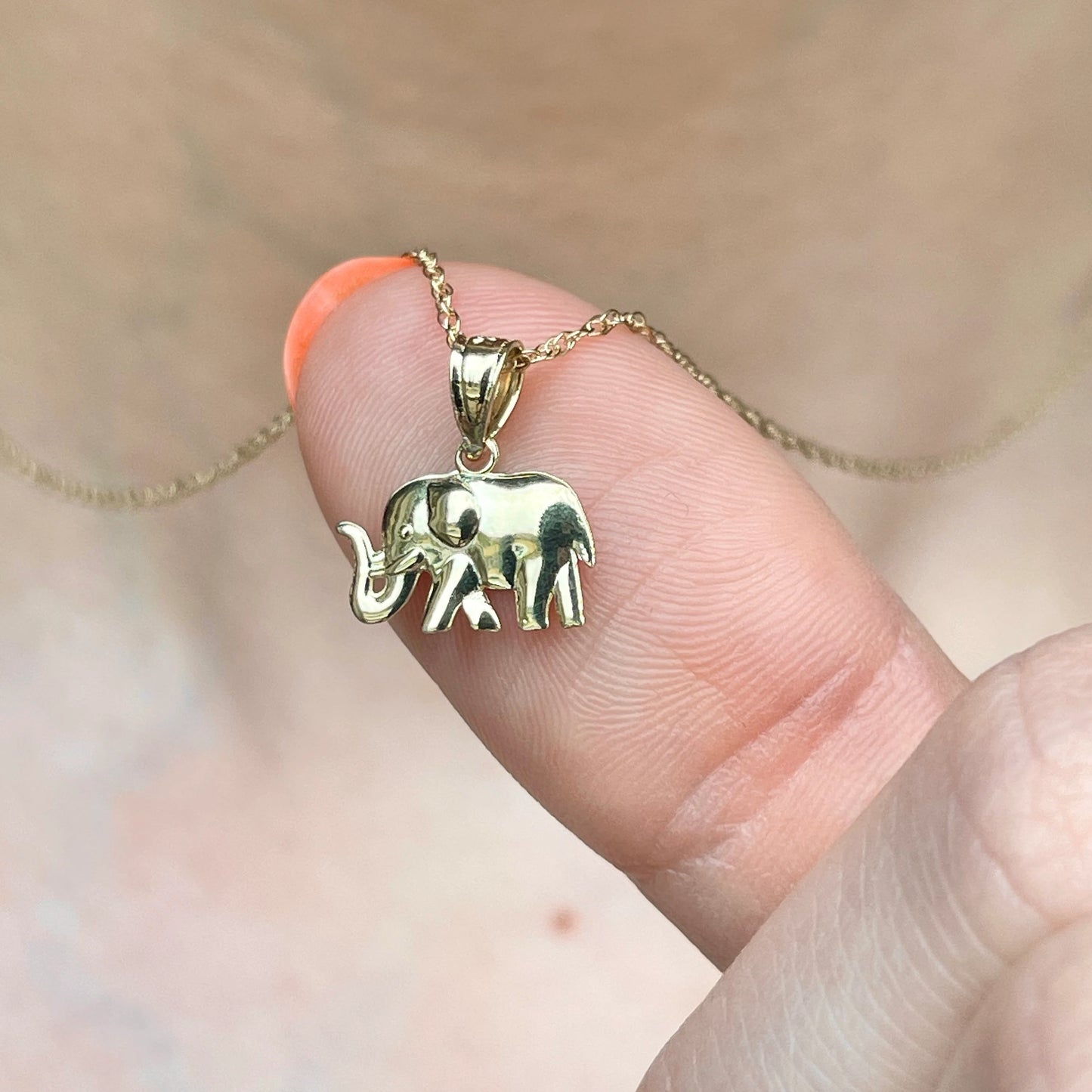 10KT Yellow Gold Hollow Mini Elephant Good Luck Pendant Charm. An elephant with its trunk up is a symbol of protection and wisdom. Wearing an elephant with its trunk up is said to bring good luck!