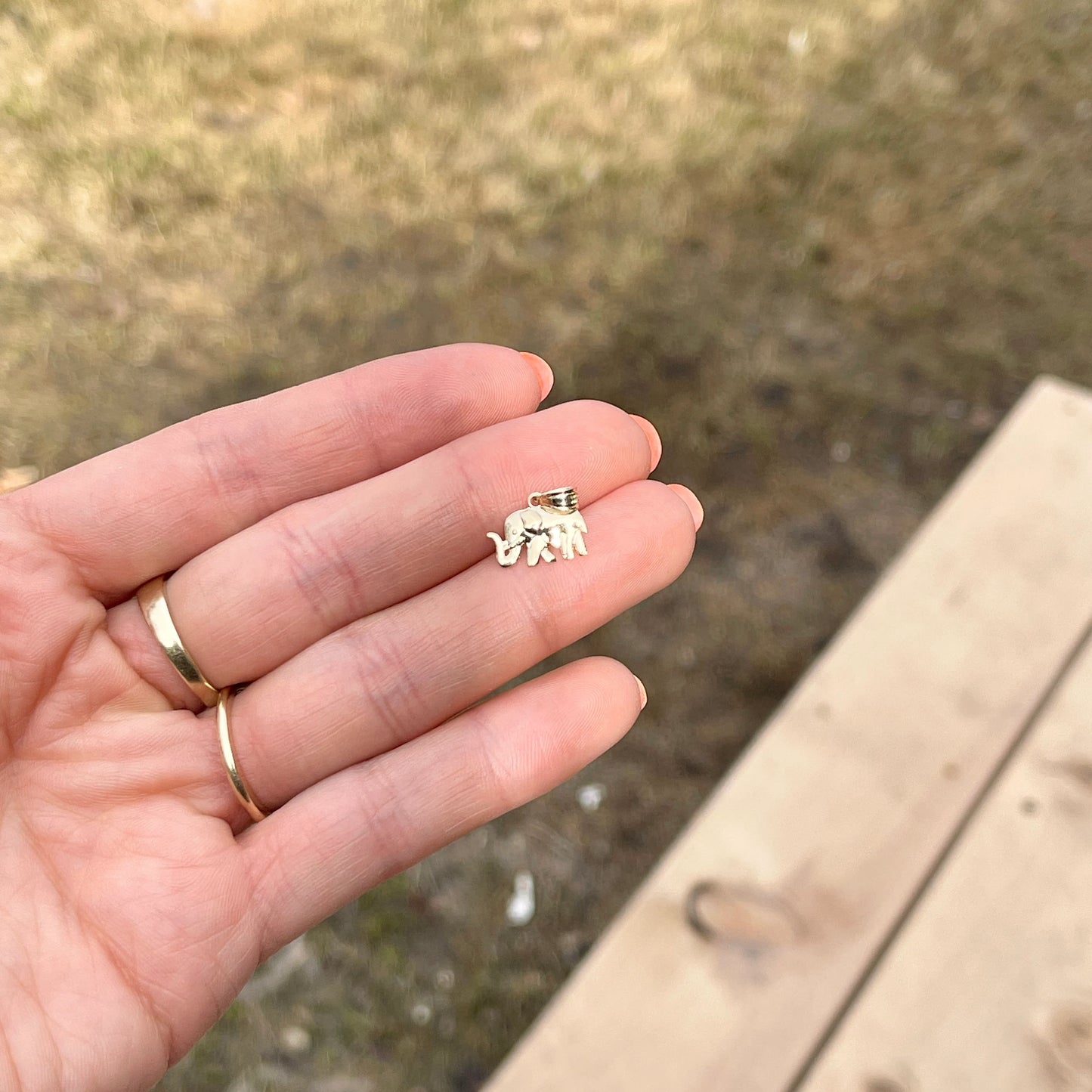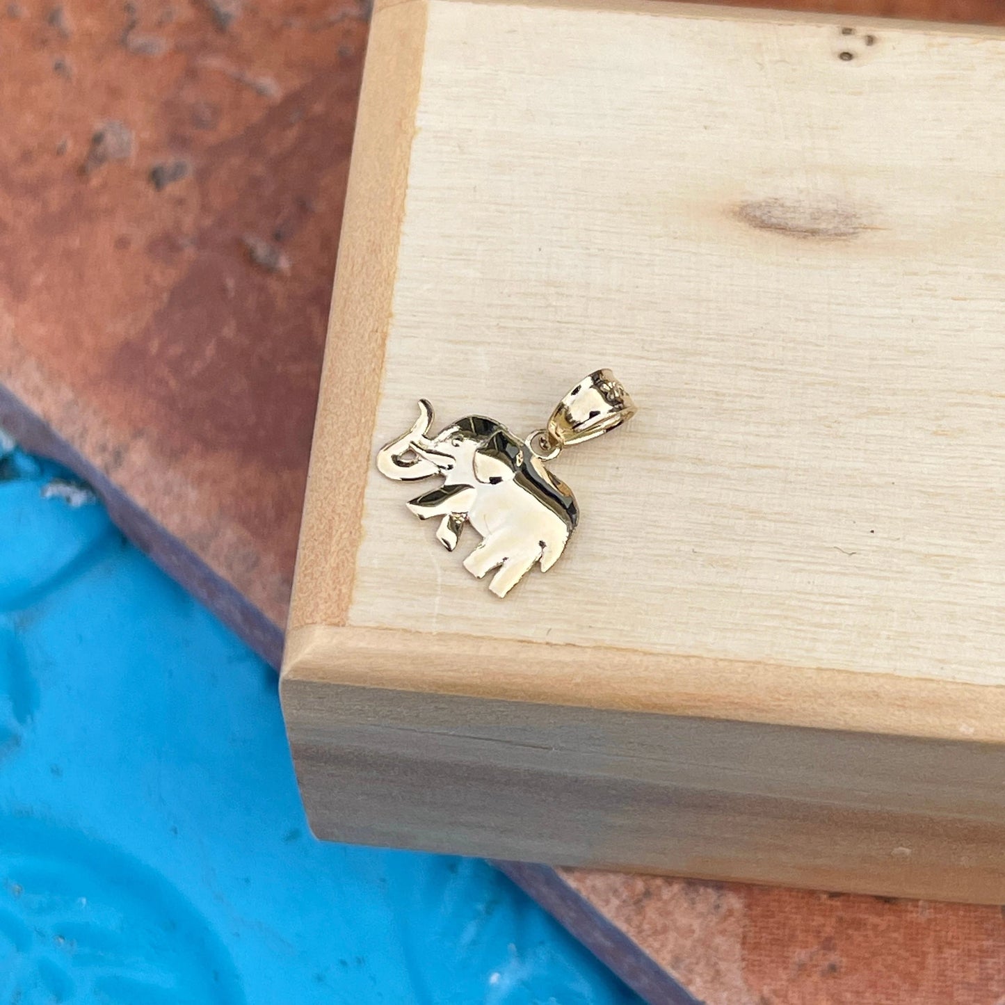 10KT Yellow Gold 2D Small Elephant Good Luck Pendant Charm