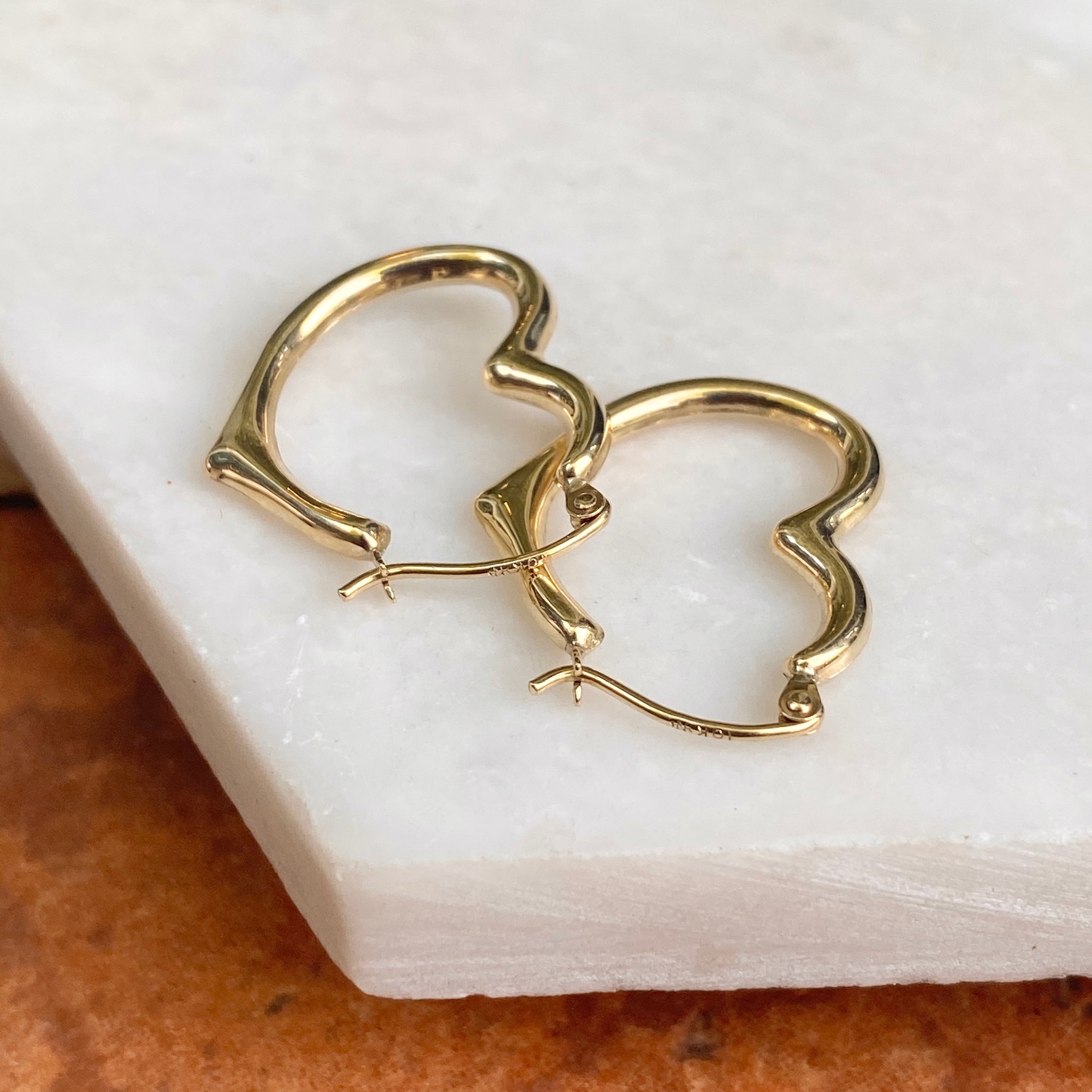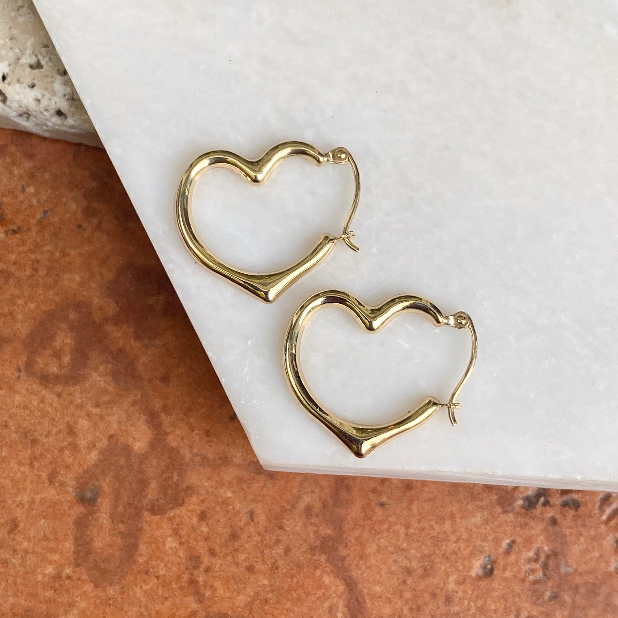 10KT Yellow Gold Medium Open Heart Hoop Earrings