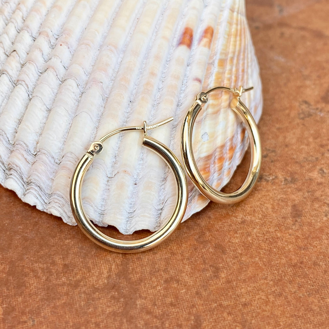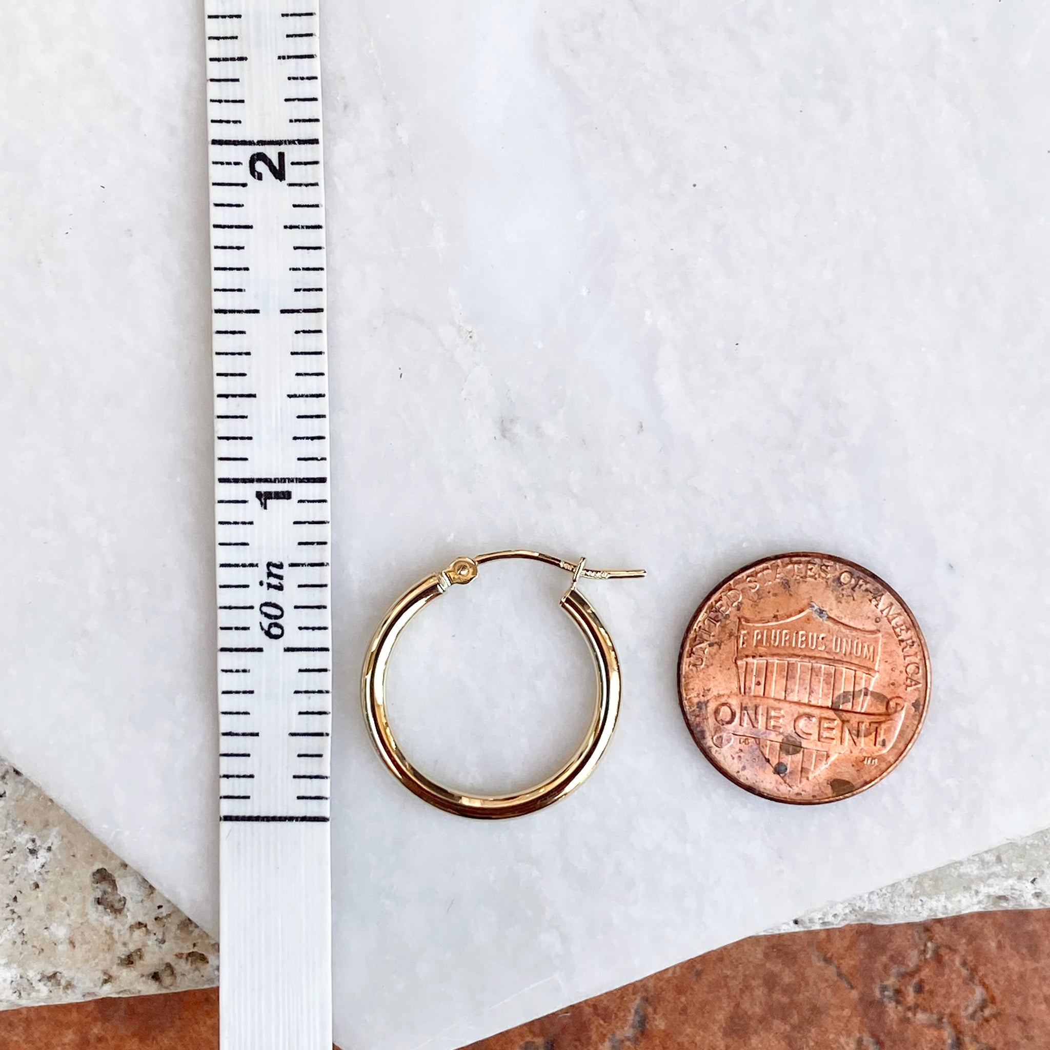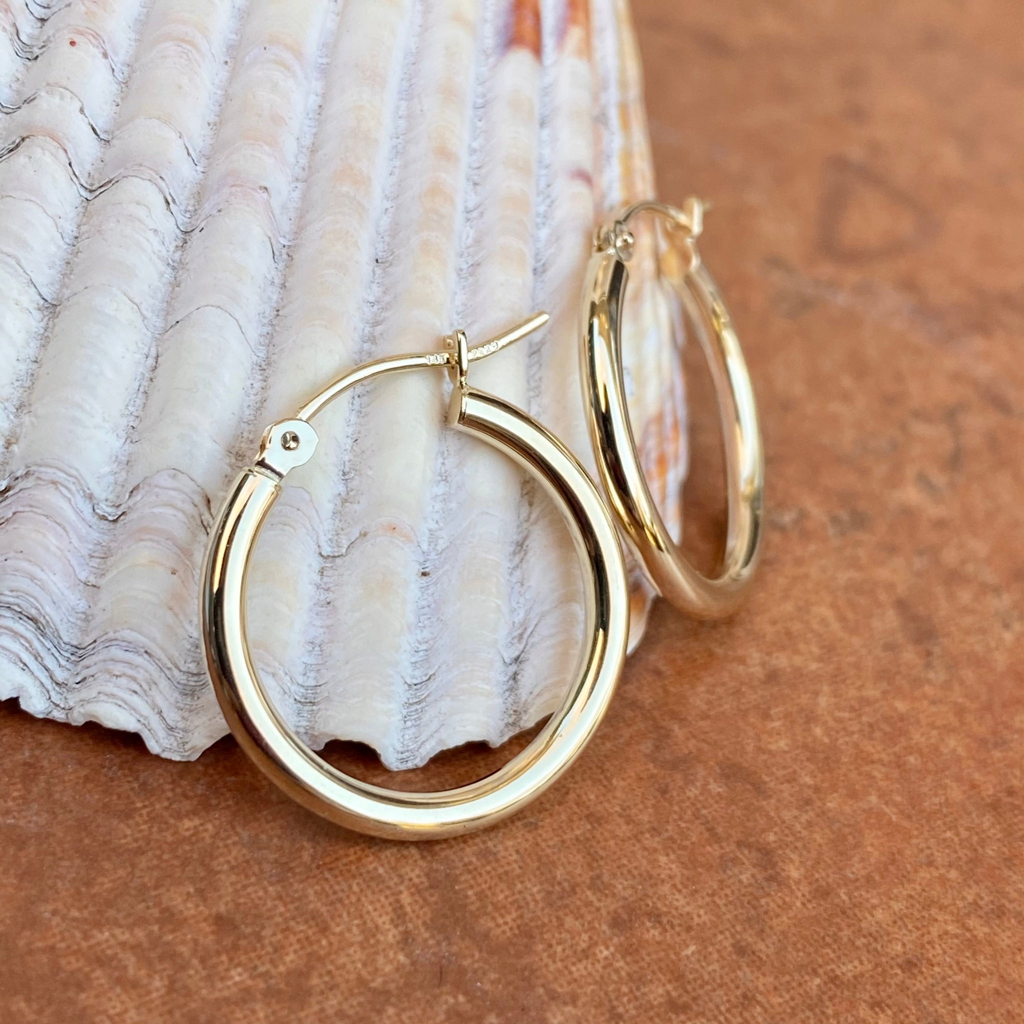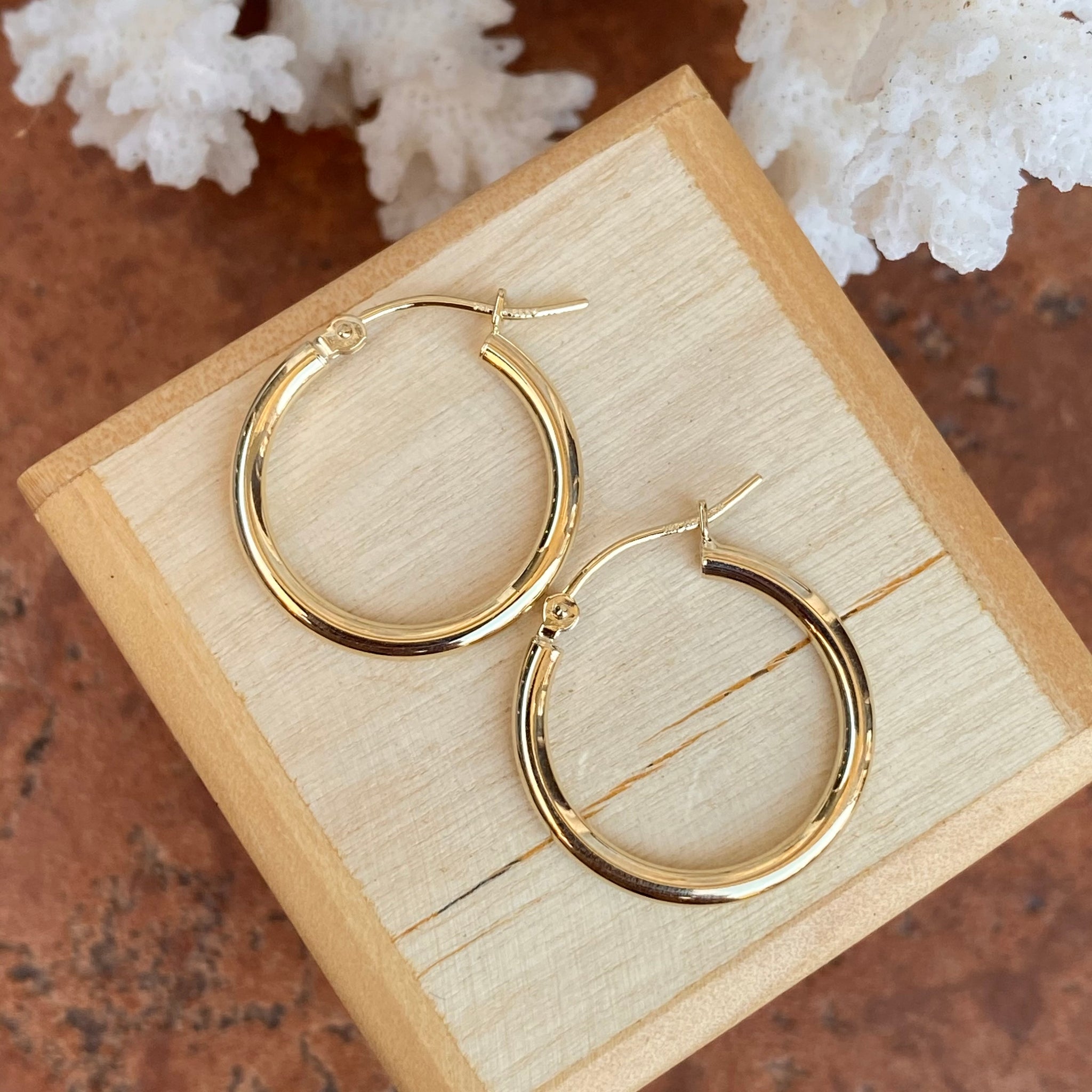 10KT Yellow Gold Polished 2mm Tube Hoop Earrings 20mm