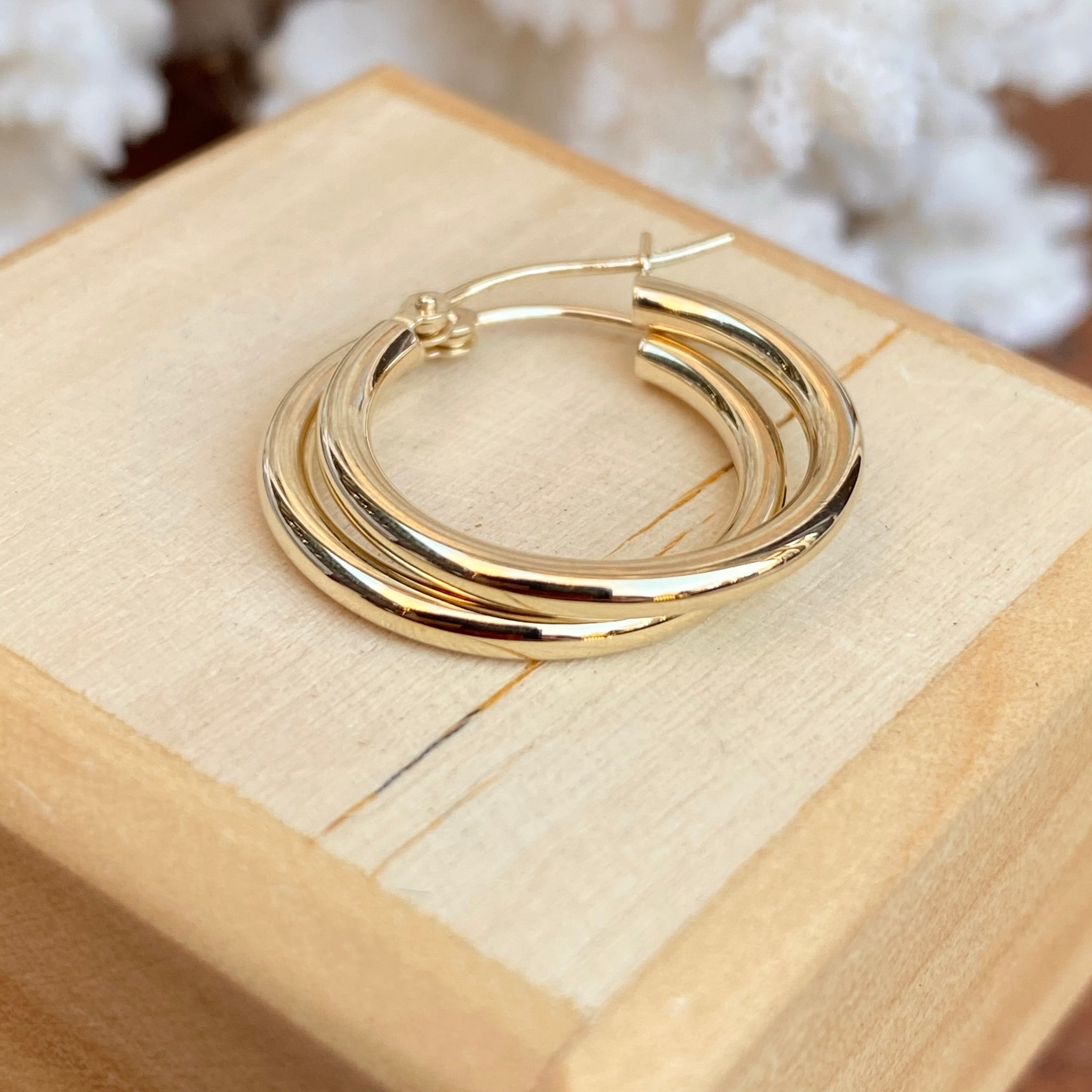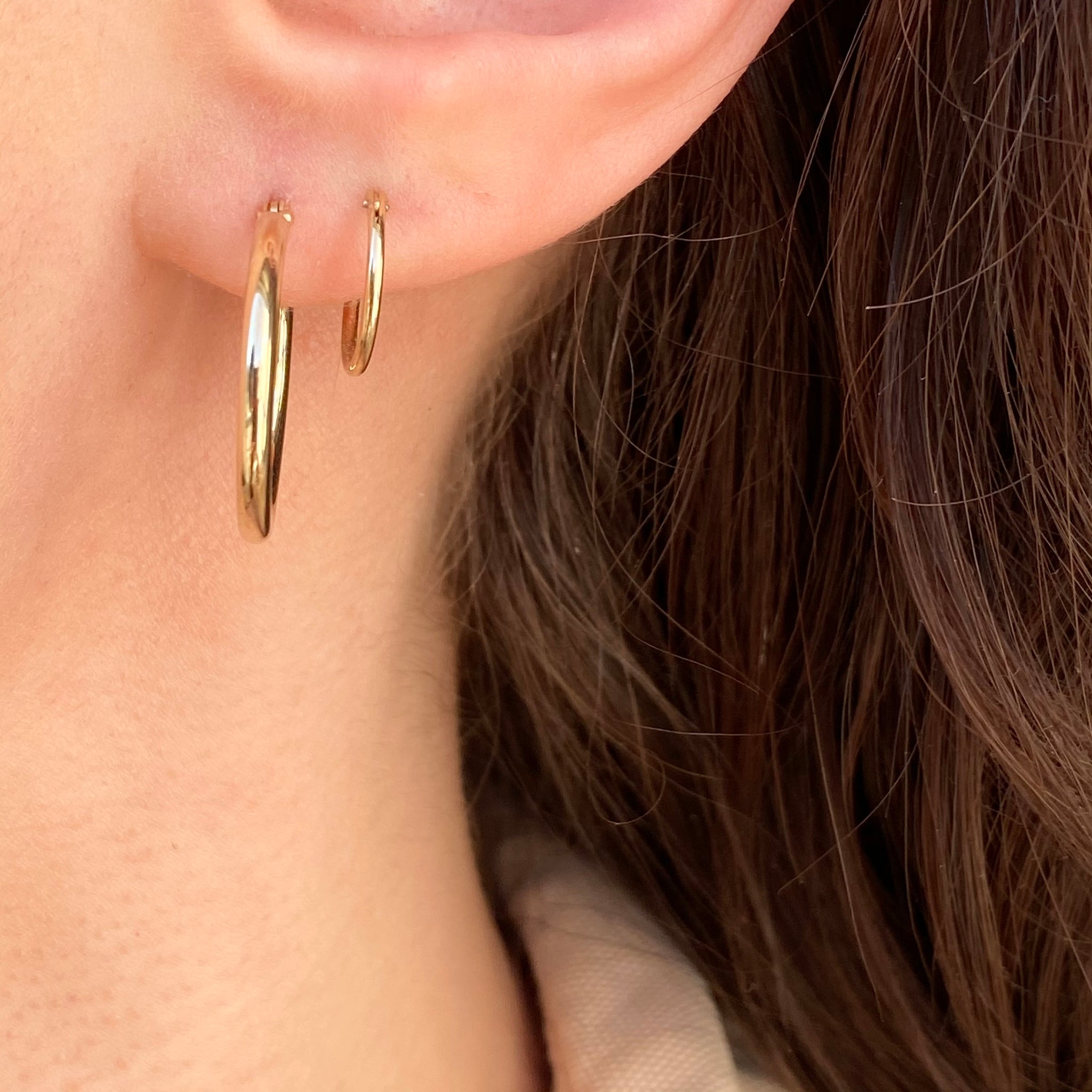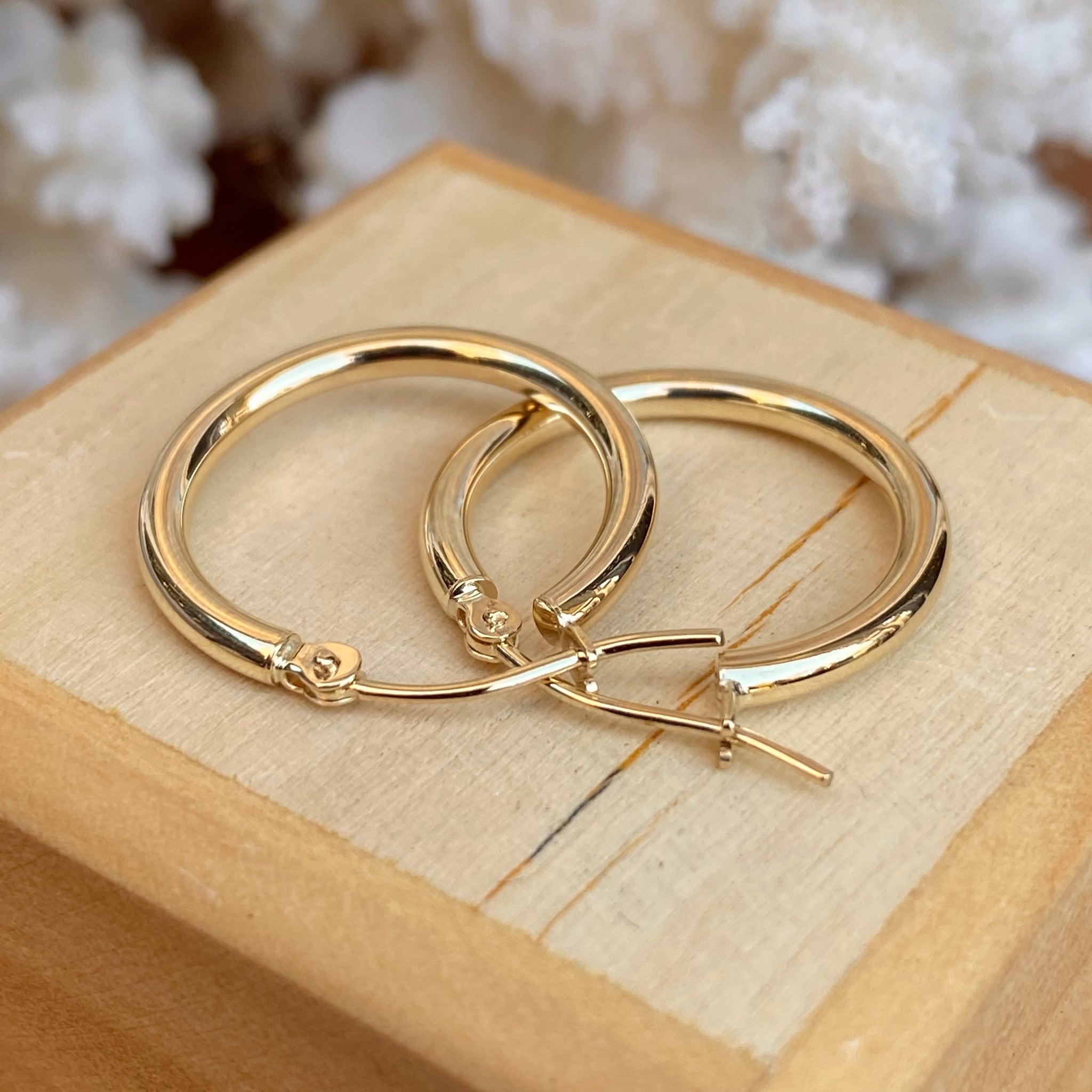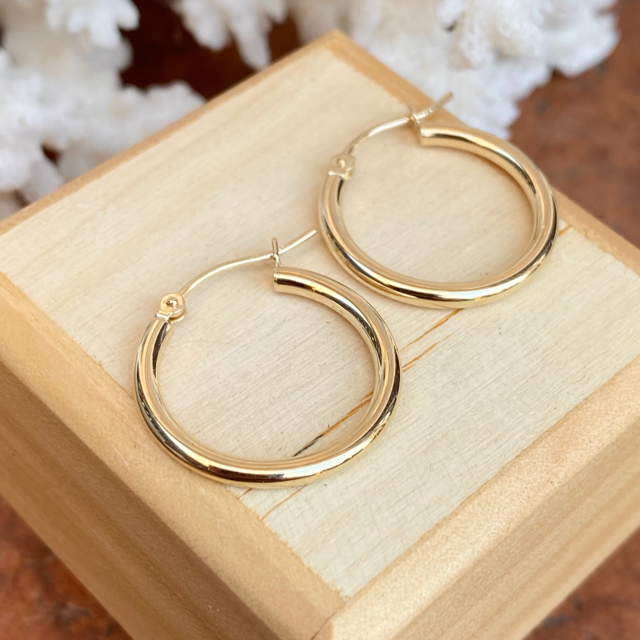 10KT Yellow Gold Polished 2mm Tube Hoop Earrings 20mm