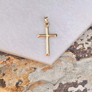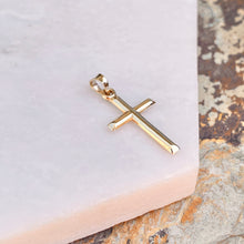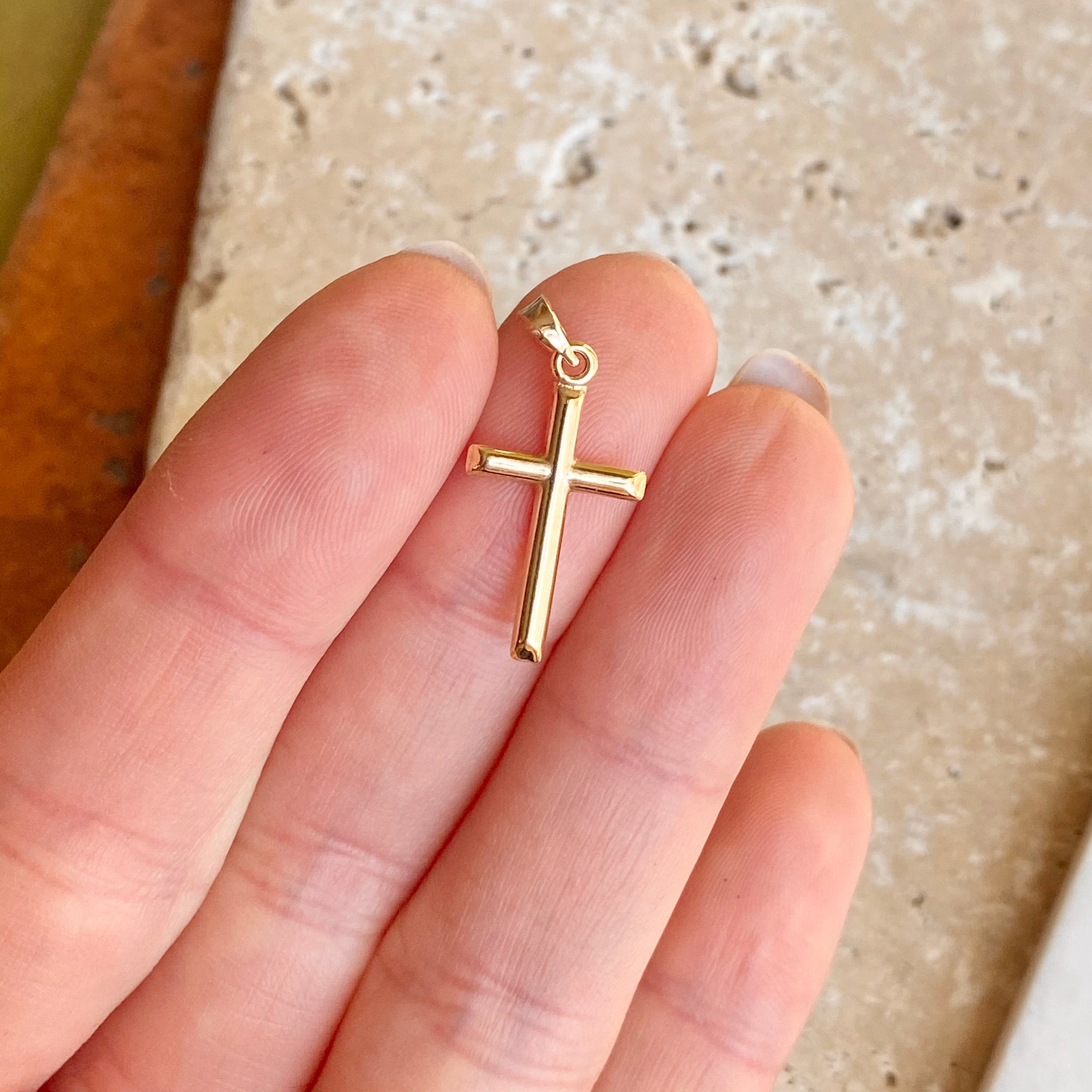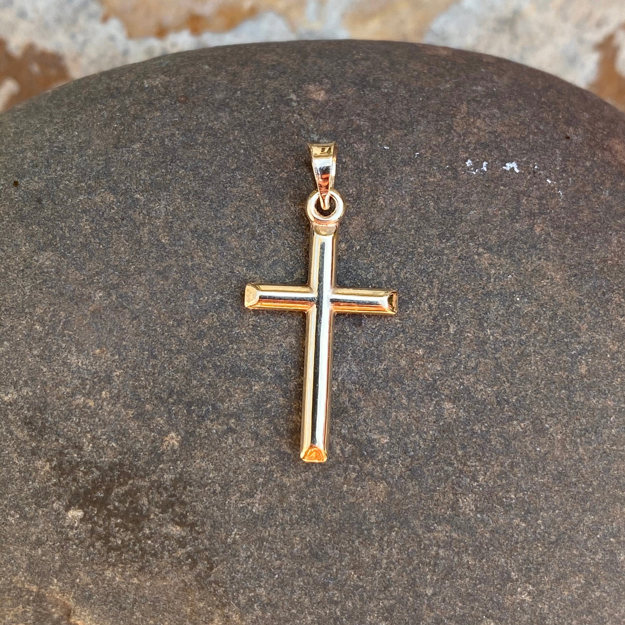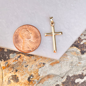 10KT yellow gold small, plain cross pendant charm. Pretty charm would be a great addition to a charm bracelet or worn alone on a light chain. Chain sold separately.