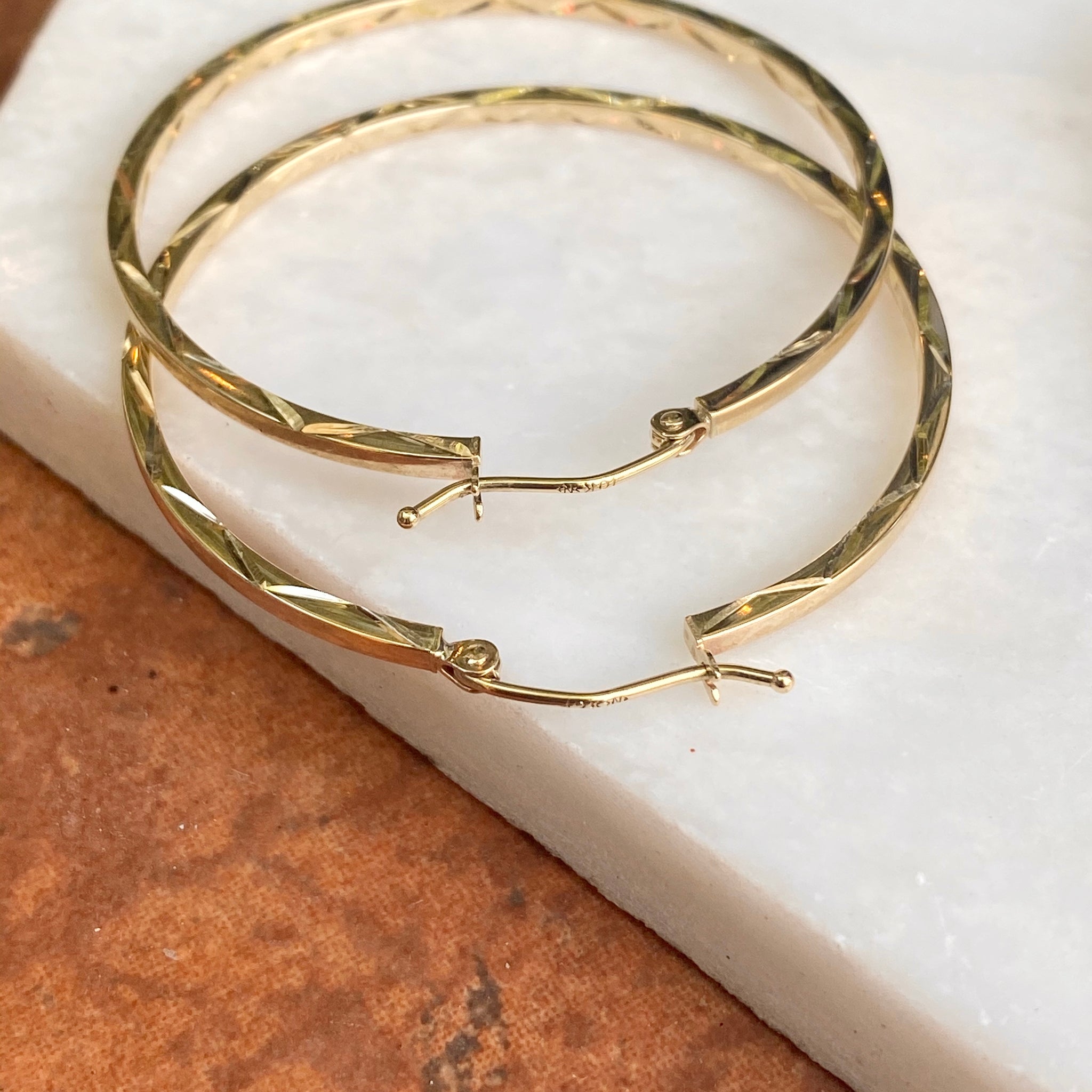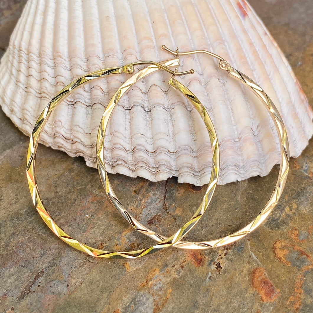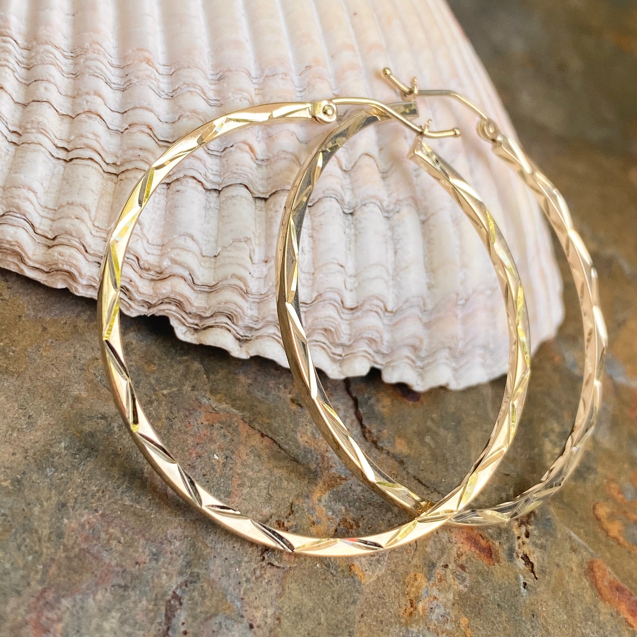 10KT Yellow Gold Polished + Diamond-Cut Hoop Earrings 40mm