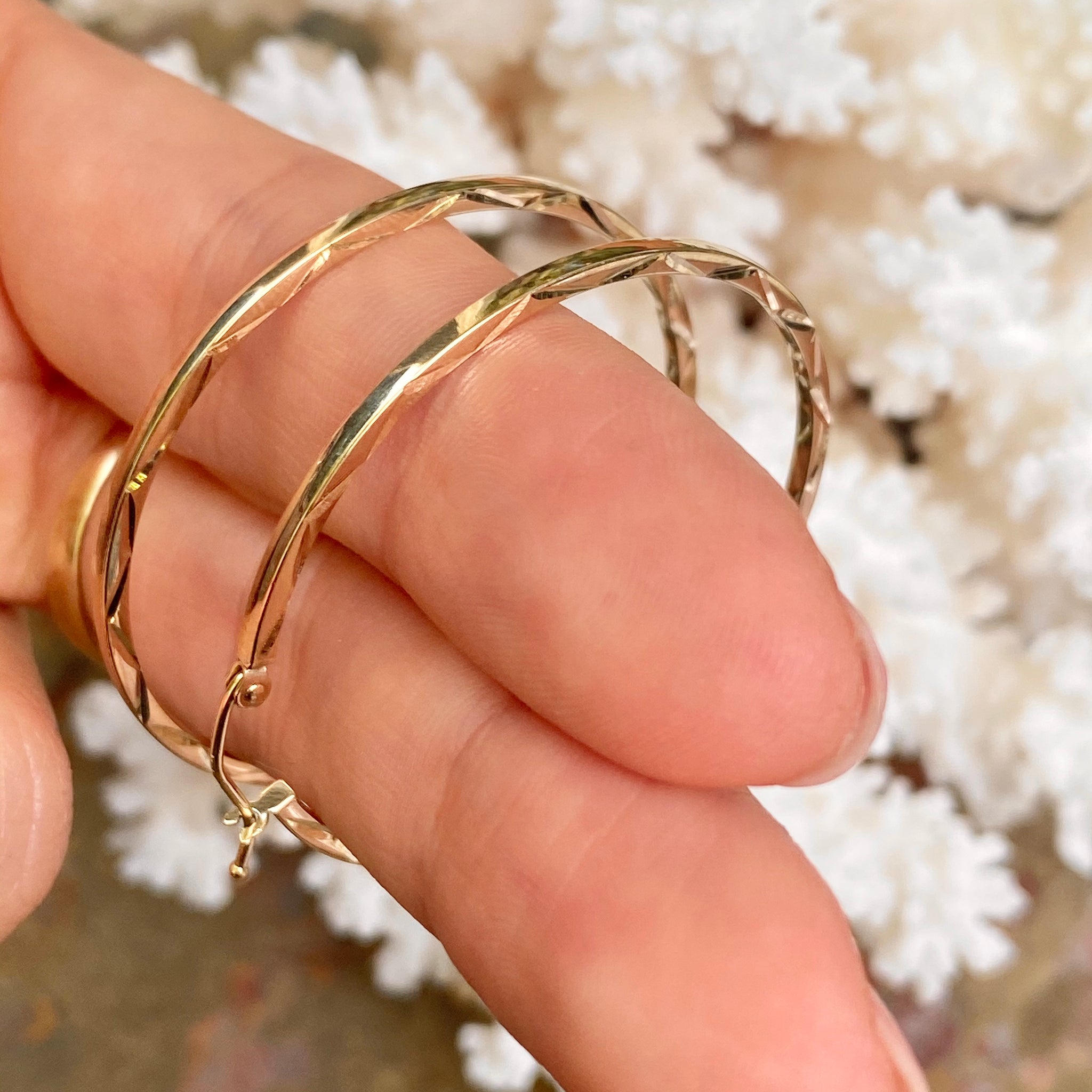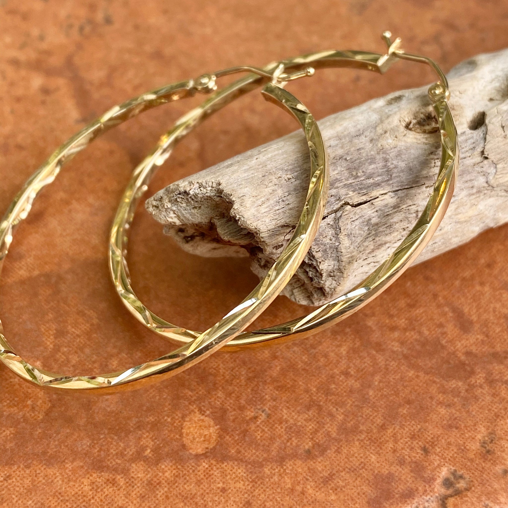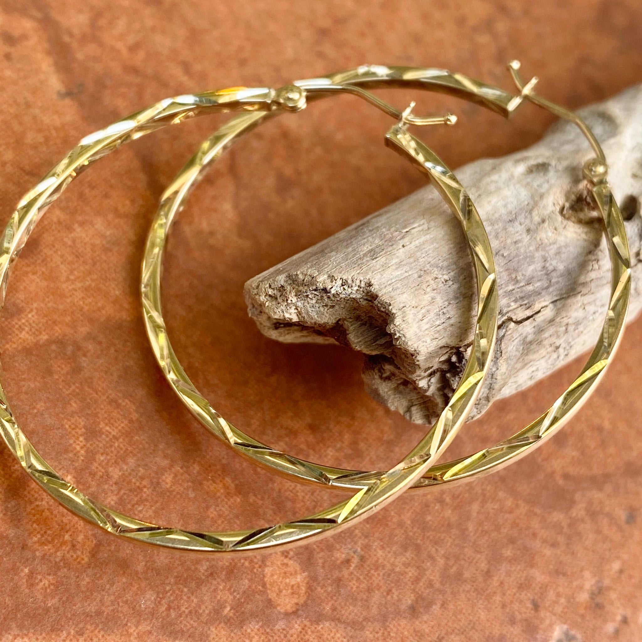 10KT Yellow Gold Polished + Diamond-Cut Hoop Earrings 40mm