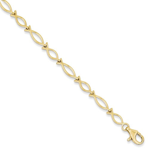 10KT Yellow Gold Polished Ichthus Religious Fish Bracelet