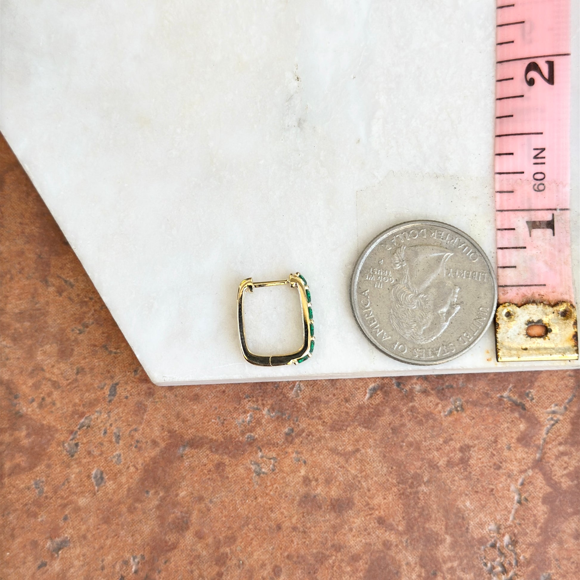 10KT Yellow Gold Rectangle Lab-Grown Emerald Hoop Earrings 14mm