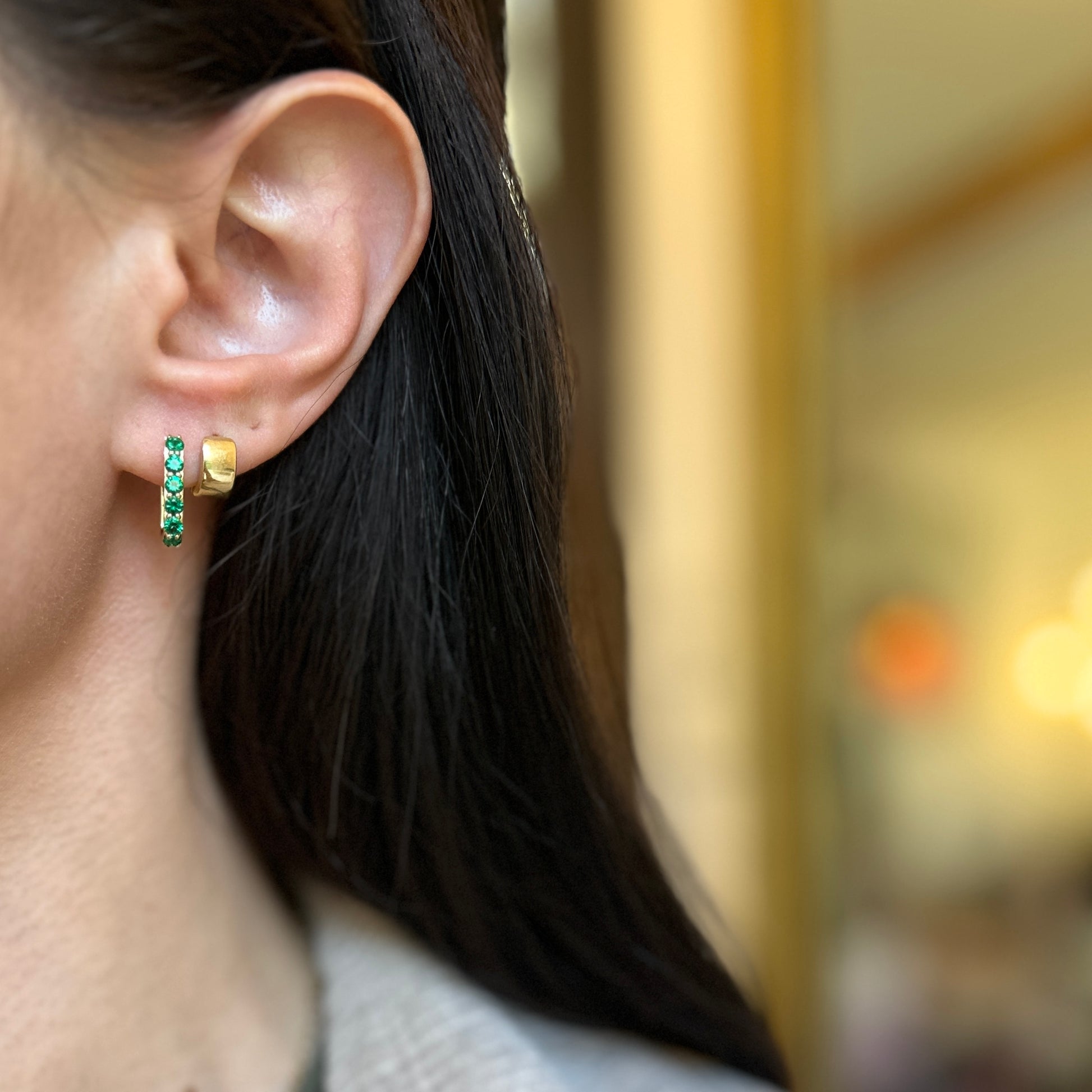 10KT Yellow Gold Lab-Created Emerald, Rectangle Hoop Earrings